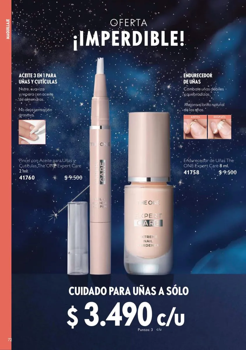 Y para tus uñas, el acabado tipo gel pero sin lámparas ultravioletas que te ofrecen los esmaltes The One, con la mejor tecnología photo reactive. Y si tus uñas se quiebran, no dejes de probar el esmalte endurecedor de Expert Care, formula enriquecida con calcio.