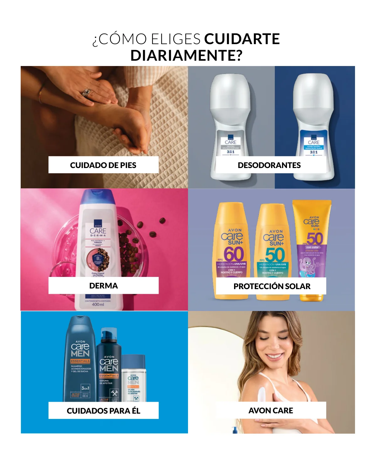 También puedes descubrir los productos de Avon Care Sun, donde encuentras opciones para toda la familia, y muchas opciones más que tenemos para ti.