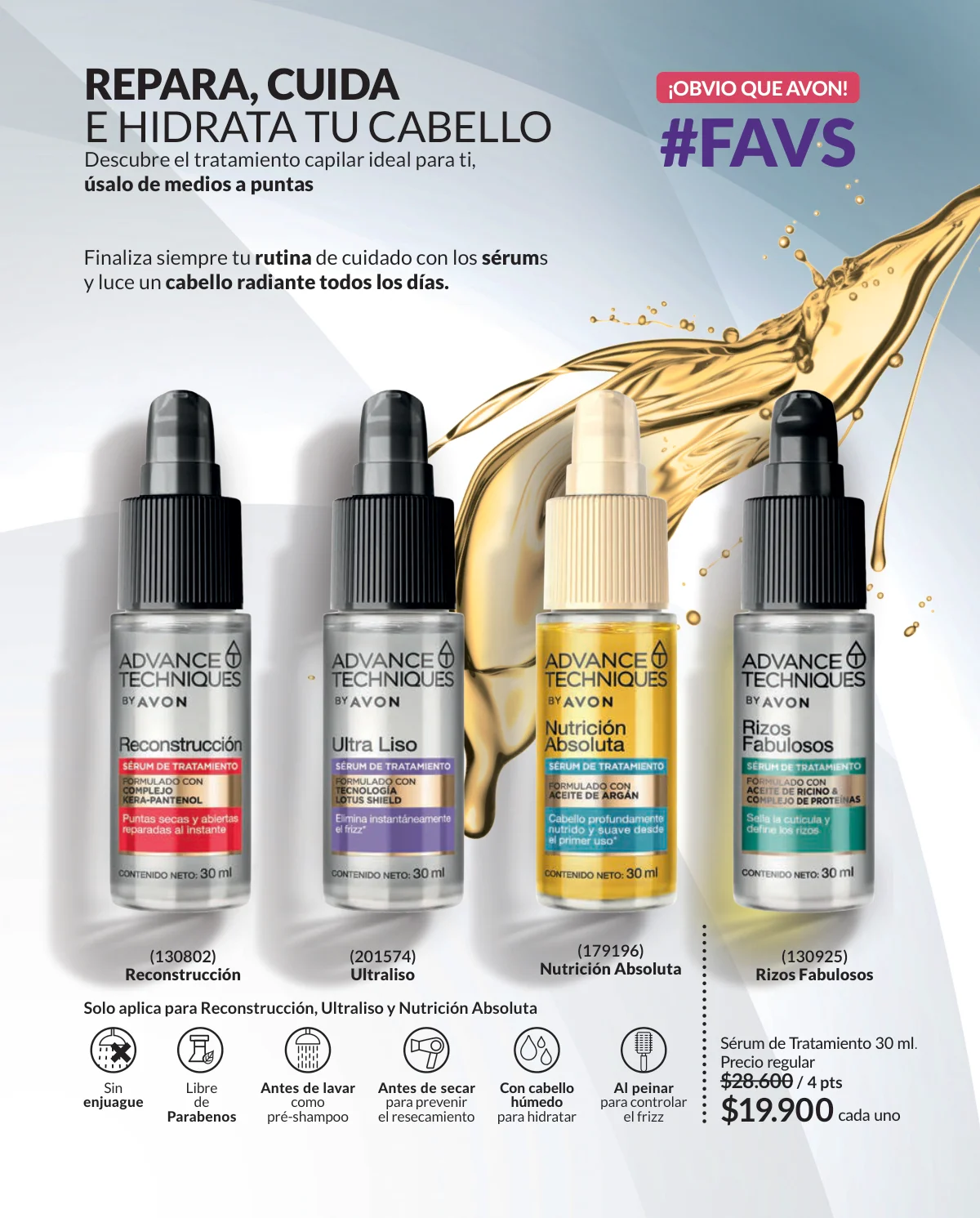 Cuando hablamos de cuidados para la piel también hablamos de cuidados para el cabello con nuestra línea: Advance Techniques. Si todavía no probaste los productos Advance ahora es el momento de sentir en tu cabello el perfume más glamoroso y la nutrición para el cabello que te brinda la línea más completa del mercado. Cuida tus cabellos de los daños del sol y del agua, recuerda siempre que tu cabello es u carta de presentación y nosotros nos encargamos de que esté perfecto. ¡Qué viva la alegría del verano!