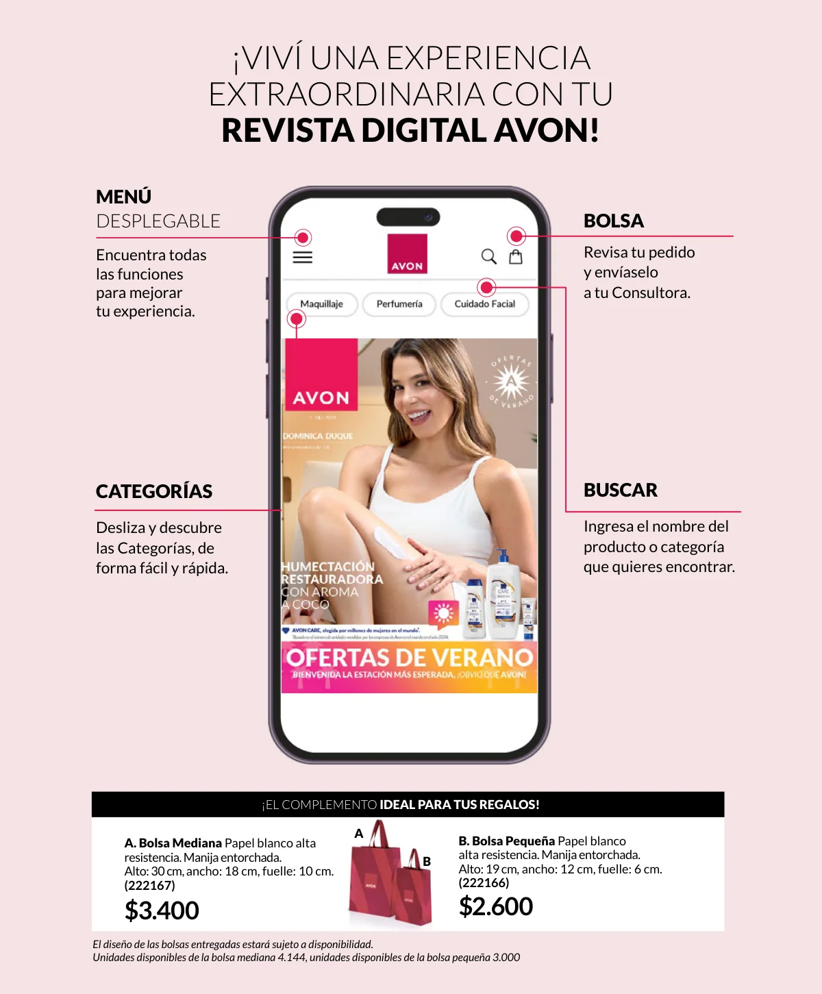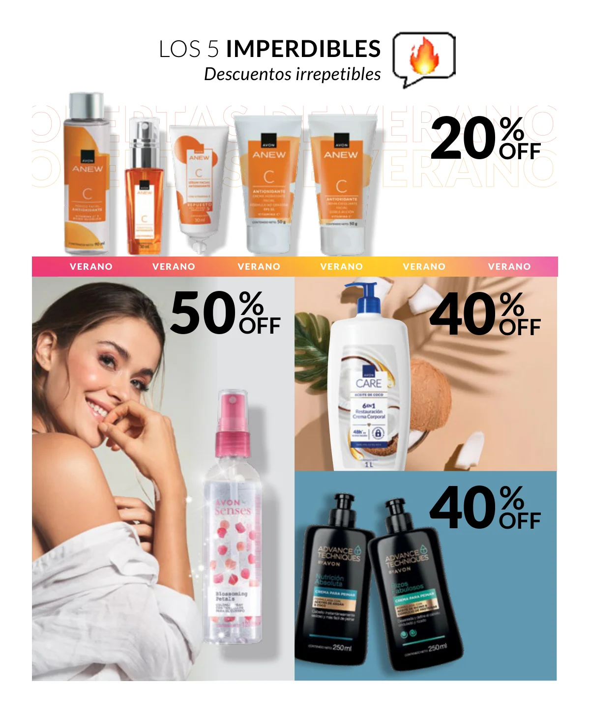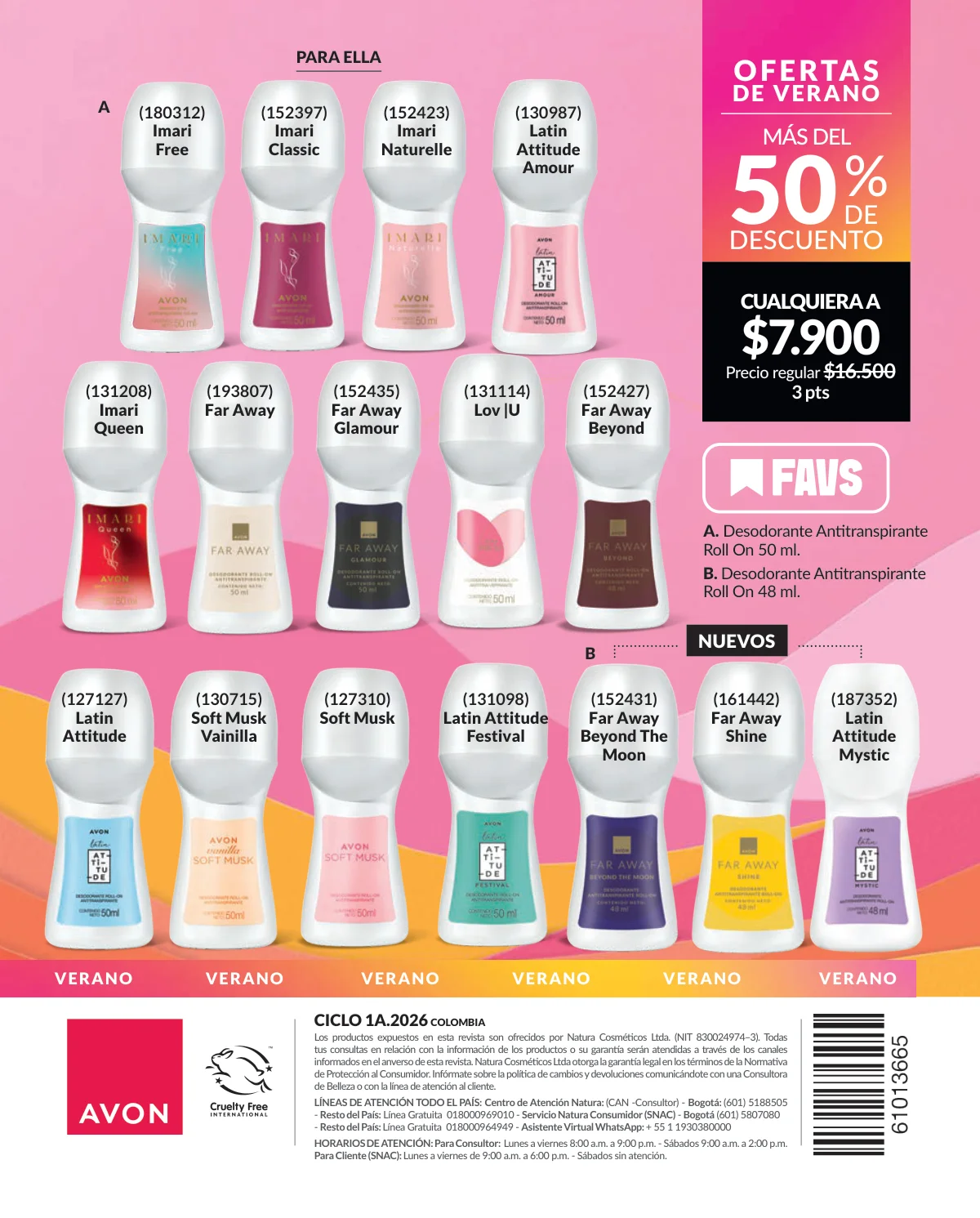 Esta nueva catálogo Avon campaña 1 2026 Colombia trae para ti fue pensada especialmente en aquellos gastos extra que tenemos en el verano, sea por las fiestas, por las vacaciones, por los viajes, entre tantas necesidades que nos van surgiendo cuando descansamos y que hasta nos aprietan el bolsillo, Avon te trae un respiro con una campaña de mega descuentos: queremos que tengas todo lo que necesitas y que te sientas libre de disfrutar la plenitud de verano con la intensidad de todo tu ser, para ello tenemos páginas especiales con los mejores mega descuentos del verano.