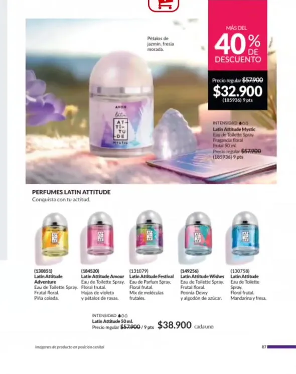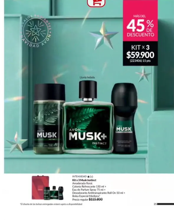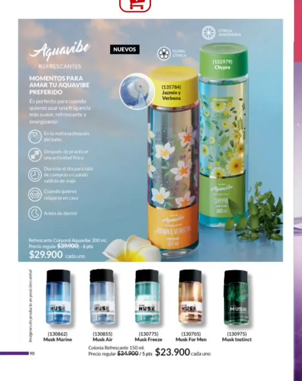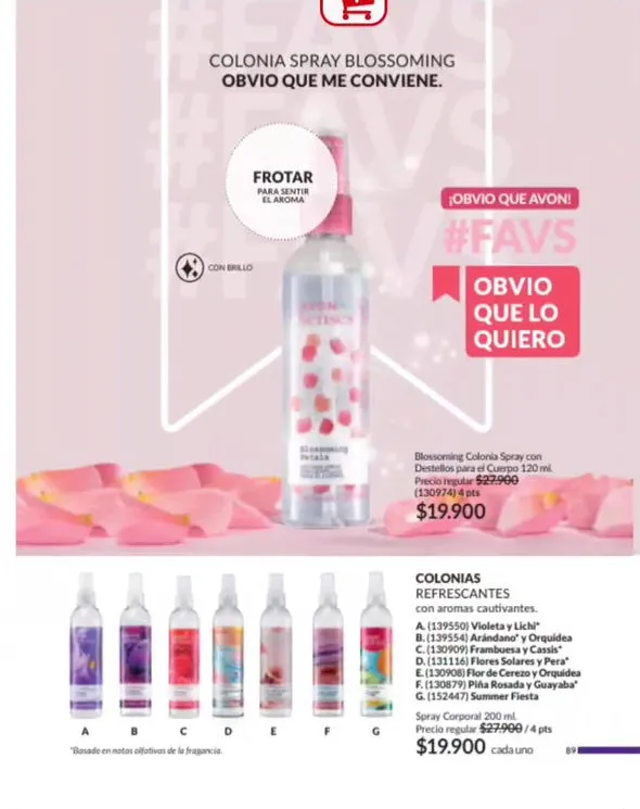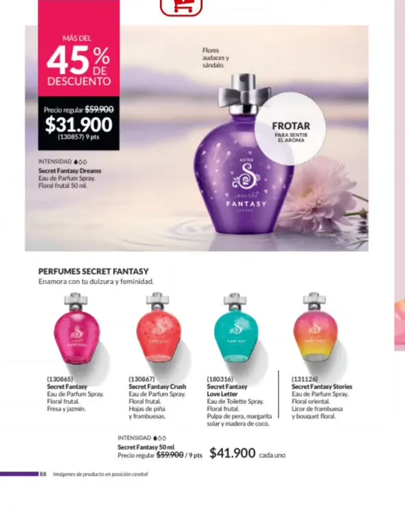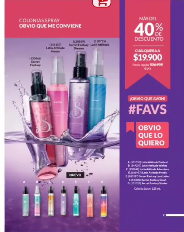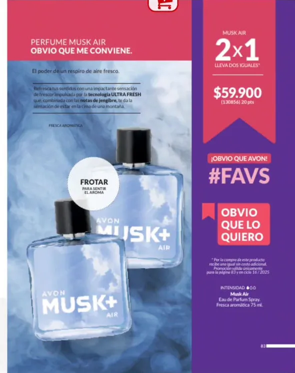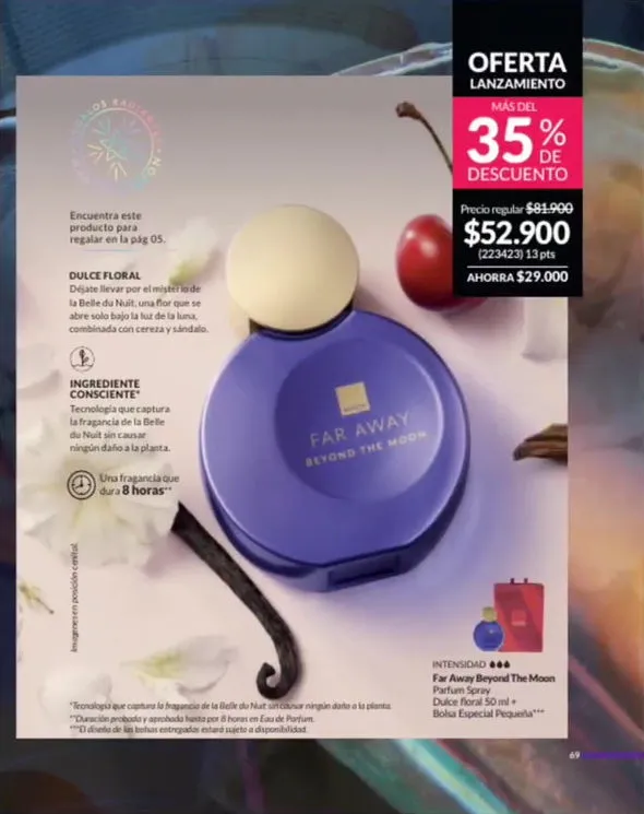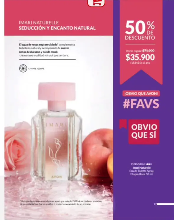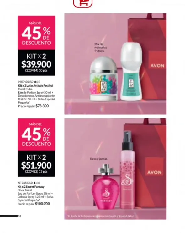 Cada ingrediente de un perfume tiene su encanto natural y se reflejan las exquisitas creaciones que catálogo Avon campaña 16 2024 Colombia siempre trae para ti con esencias florales y frutales de la fragancia for away y otros que enamoran para siempre como el Today con aromas amaderados.