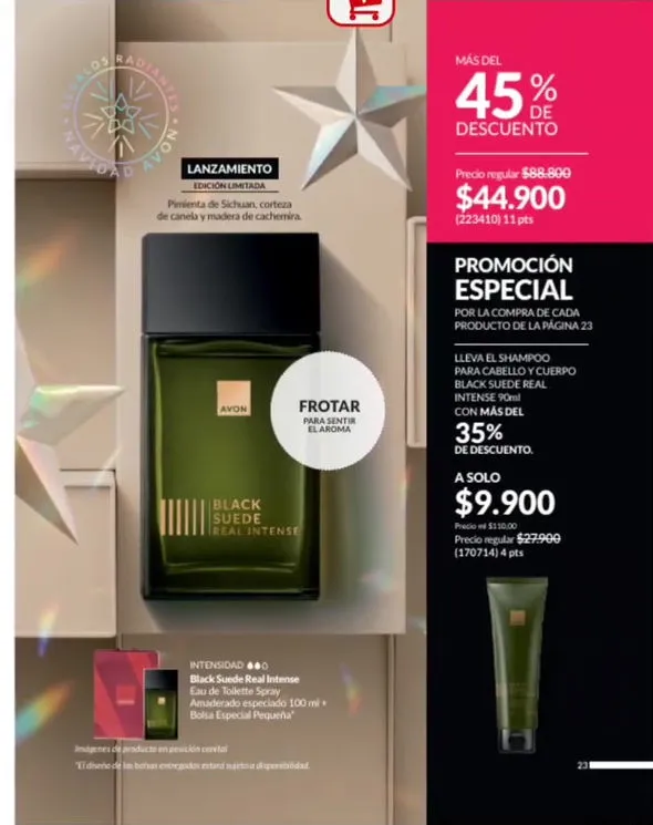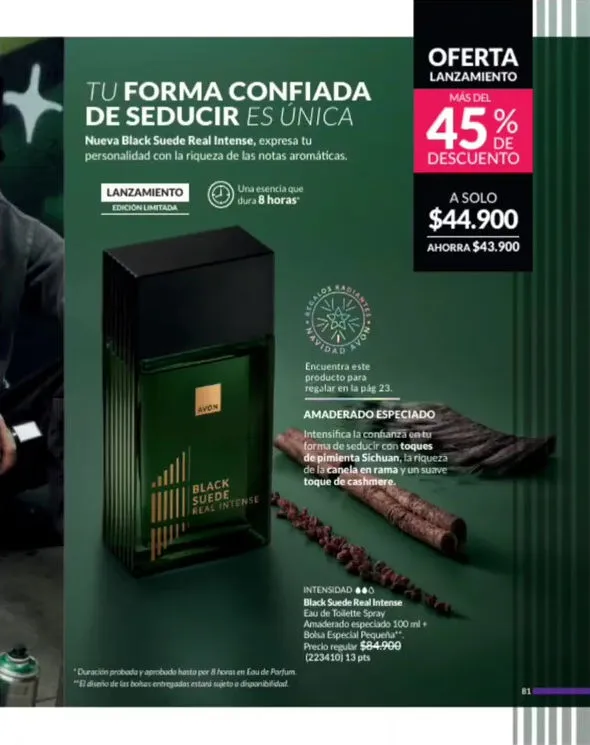 Y para los caballeros que les gusta vivir al máximo y sin miedo, la fragancia amaderada black suede secret será el secreto de tu seducción. Adquiérela en oferta de lanzamiento junto con un desodorante del mismo aroma y llévate gratis una billetera.