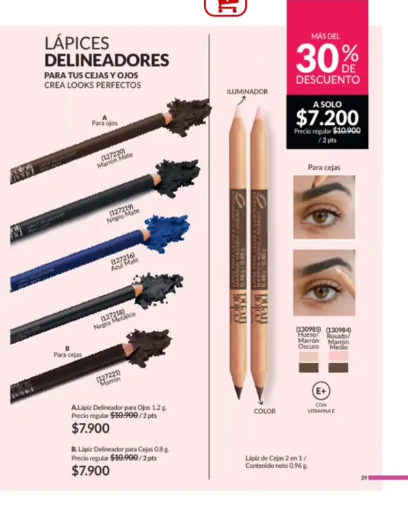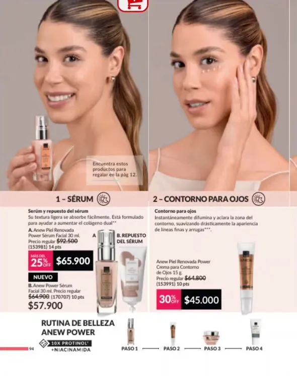 Y para que un buen maquillaje resalte tu rostro, llego la nueva base serum antiedad con cobertura media y acabado radiante ideal para piel normal a seca. Y para resaltar tu mirada, aplica el plumón con delineado preciso, pigmento negro profundo y resistente al agua.