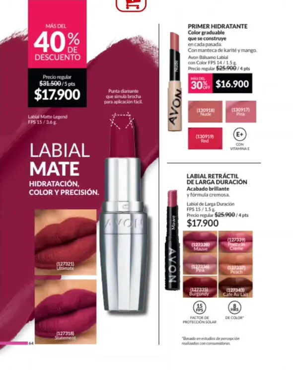 Complementa tu maquillaje ideal usando los compactos doble beneficio y labiales con colores atractivos e intensos. Escoge entre los de efecto brillo, mate o ultramate según sea la ocasión.
