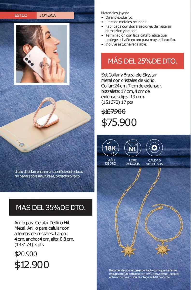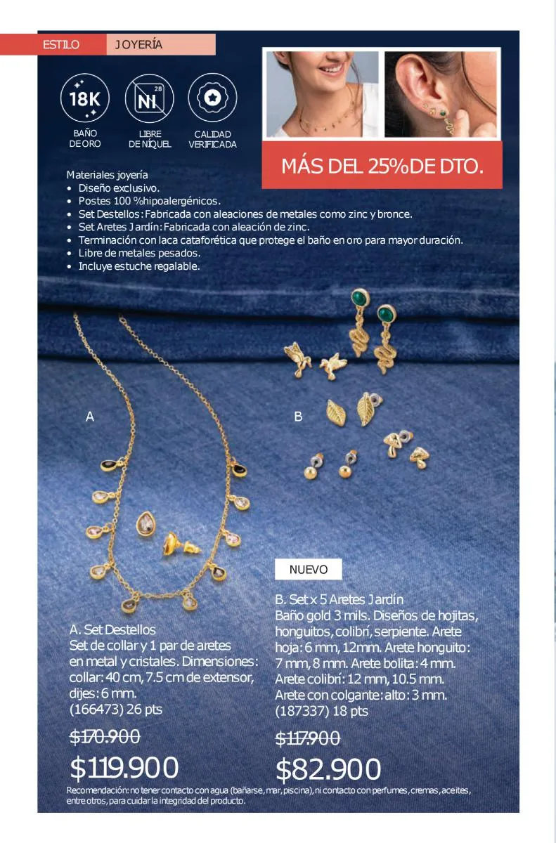 Por último, disfruta de la mejor joyería de fantasía hecha en acero y con baño de oro, piedras y perlas acrílicas.