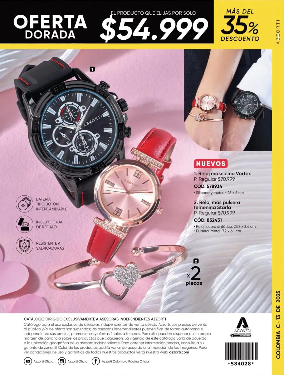 Nuestra sección en el catálogo Azzorti campaña 13 2025 Colombia de prendas masculinas te fascinara. Nuevas e imperdibles ofertas disfrutaras, y frases motivadoras te darán el aliento que necesitas cada día. Nuestras nuevas cadenas, collares, anillos, aros y muchos otros tipos de joyas te encantarán. Nuestros aros Amor bendecido con la imagen de la Virgen Inmaculada, quien te guiará a la felicidad. Regala detalles inolvidables y únicos con nuestros accesorios para madre e hija.