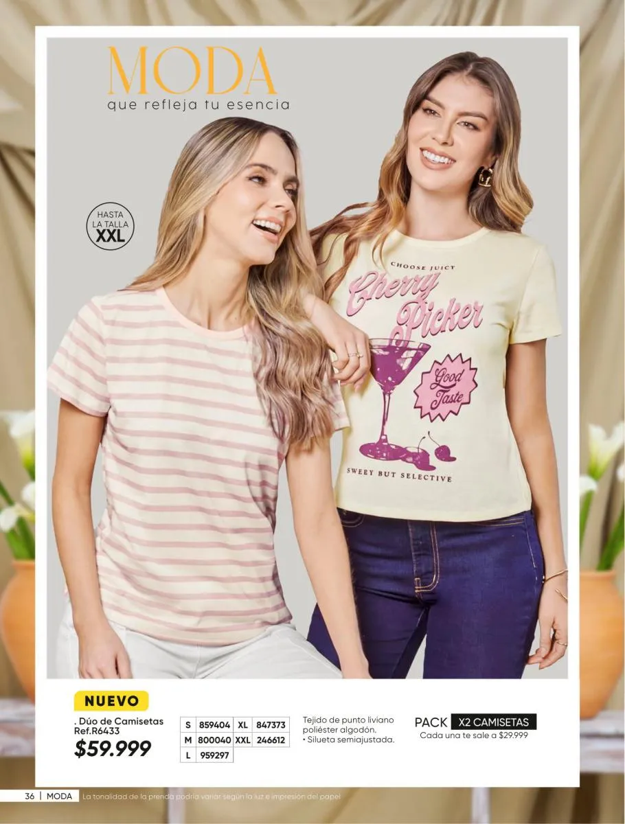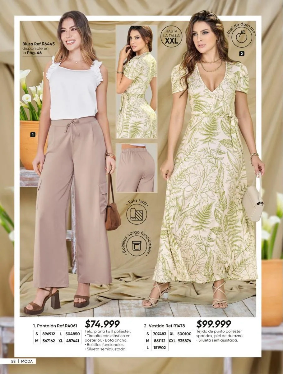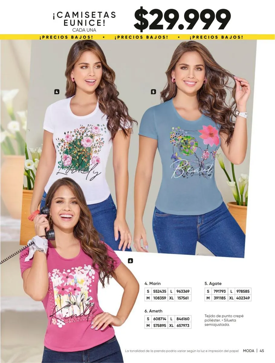 Los básicos chic colores y siluetas de temporada. Blusa Lucibel a un precio imperdible. La camiseta Ada, muy natural que inspira. Ainova nos acerca un vestido de flores frescas y muy vivaces. Los conjuntos de 2 prendas te aportan cambios de looks para cada ocasión. Los colores llenos de vida, estampados selváticos que te enamoraran no pueden faltar en tu colección. La naturaleza hecha moda en tu armario, y un mundo de oportunidades de la mano de catálogo Azzorti campaña 6 2026.