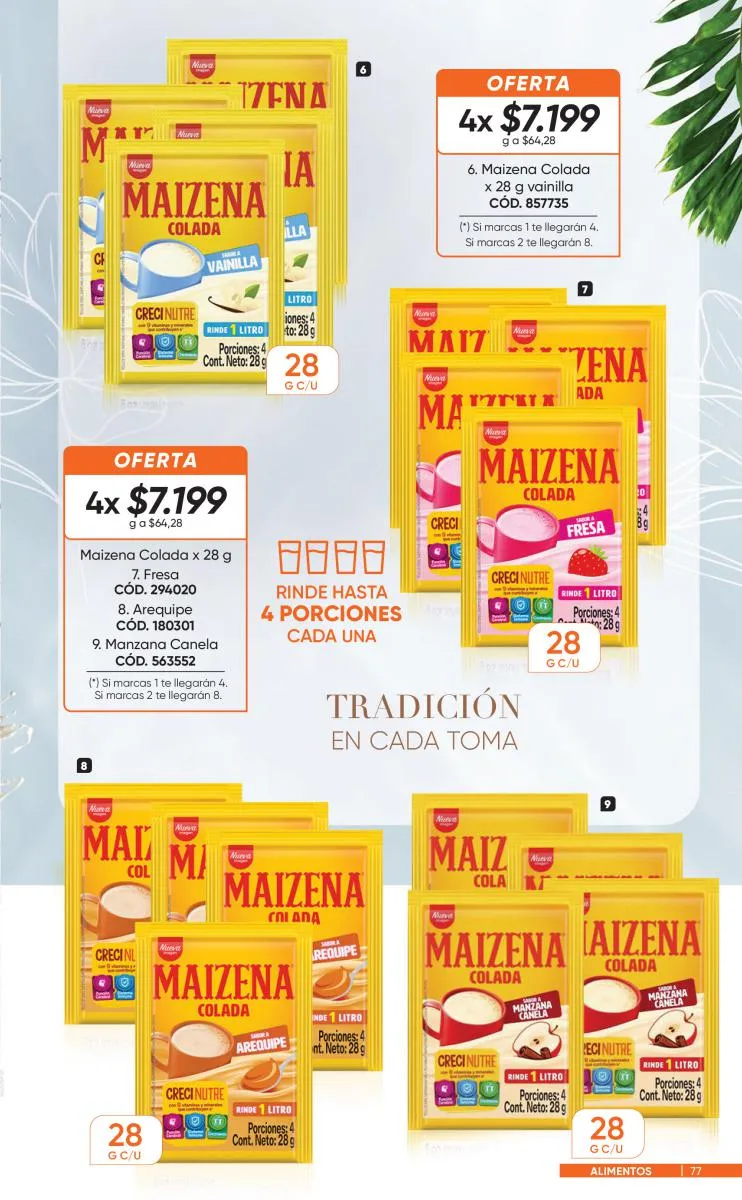 Este catálogo está lleno de ofertas que te ayudaran a cocinar lo más saludable para tu familia, amigos, amigas y puedas impresionar a todos, con la Maizena Mezcla ya tendrás parte del proceso realizado y tu toque de amor, harán unos panqueques ¡riquísimos!