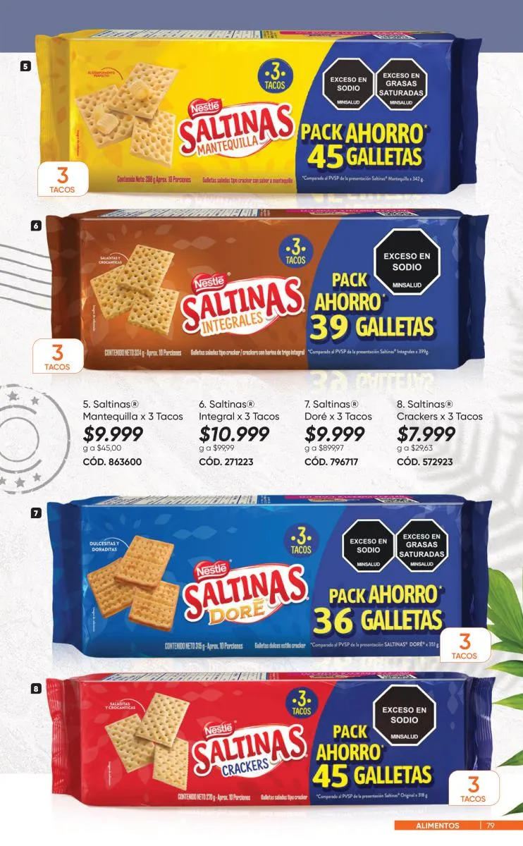 Para tus desayunos, meriendas o colaciones el sabor de la felicidad lo encontraras en las galletitas 3 tacos, Saltinas de Nestle en sus 4 sabores.