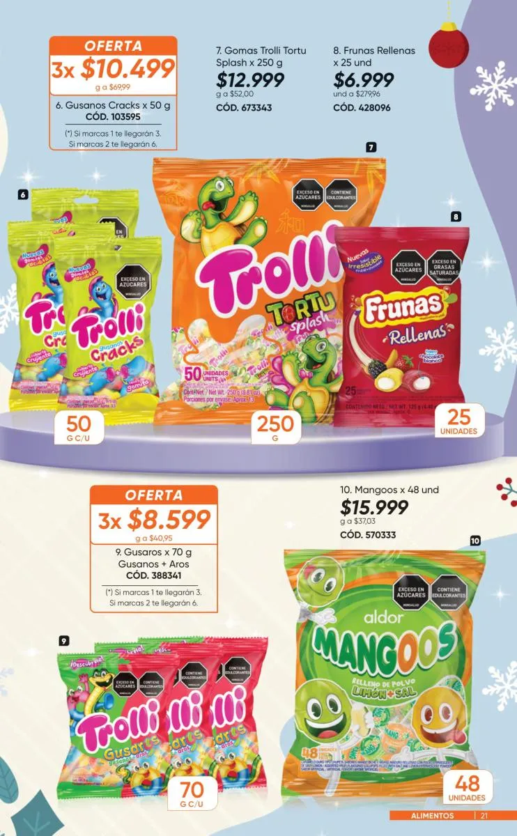 Hay mucho más en panquesitos de Santa, minipalitos con canela, arequipe, paquetes de buñuelos navideños y hasta tus gomitas Trolli para regalar un pedacito de Navidad.