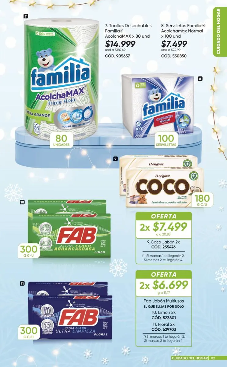 No olvides los productos de limpieza general para el hogar en esta catálogo Azzorti Plus 17 2025. Los jabones en pasta de Puro, Coco o Fab son imprescindibles para el lavado de tu ropa, así como los suavizantes Aromatel o Vel.