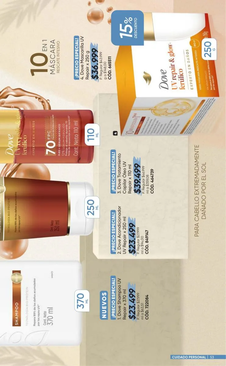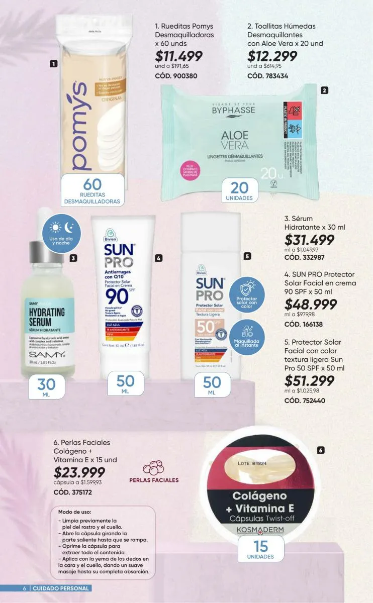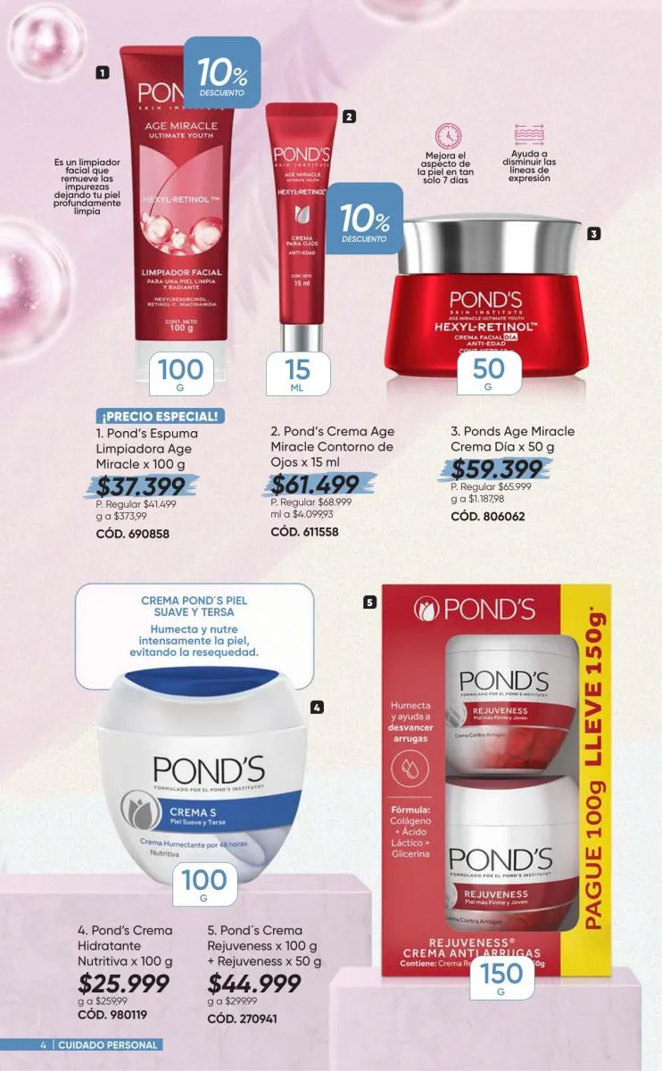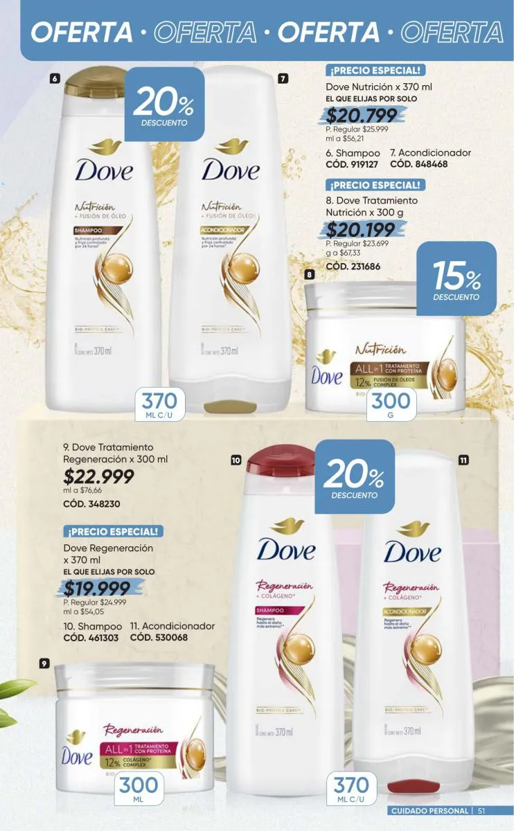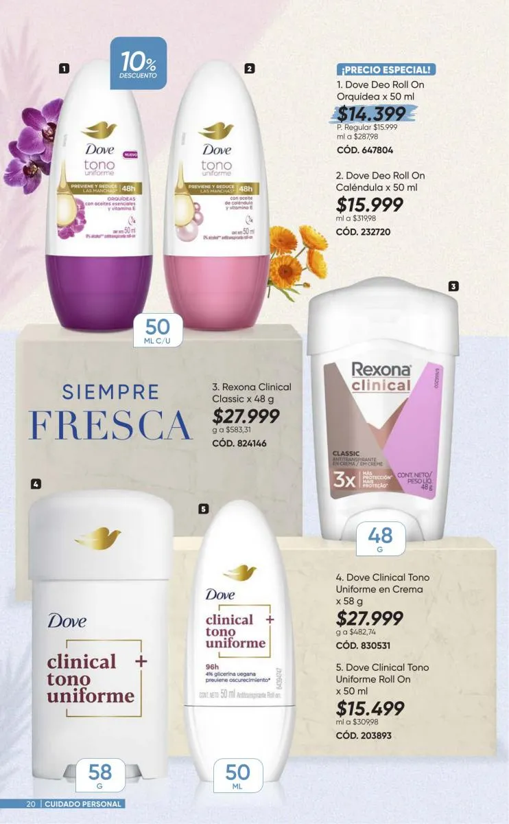 Para tu cabello tienes variedad de productos con las marcas Dove, Coloriss, Muss, Savital y  Sedal porque tu cabellera lo vale. Para tu piel y rostro Pond´s, y nailen son tus aliados. Aprovecha tus espacios con aromas increíbles. Limpia ya cuida toso y lo puedes aprovechar al 20% de descuento.