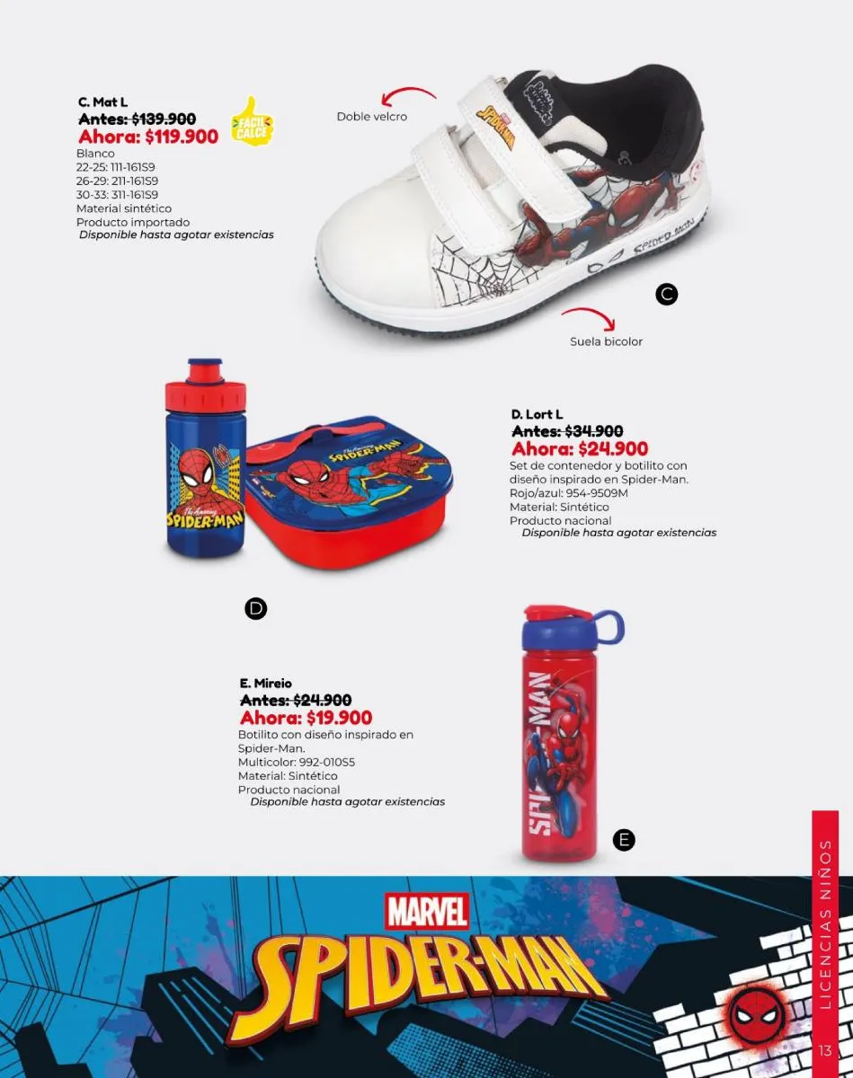 Protege a tus niños con la súper ayuda de Spiderman y los poderes mágicos de Frozen: una alianza de Bata con Marvel y Dysney en la que creamos súper capas para la lluvia, impermeables, con cierre con botones para simplificar su uso y doble bolsillo frontal. Además, paraguas exclusivos con mango telescópico de color, elaborados con 100% de poliéster: la mejor calidad y el diseño preferido de tus niños te garantizan la protección que estás buscando para esos días lluviosos. Y no te pierdas las botas exclusivas para la lluvia: llevan el detalle del personaje por fuera y un acolchado cálido y confortable por dentro, unas botas que a tus niños les encantarán y llenarán de sonrisas los días grises en esta Bata Kids campaña 6 2025.