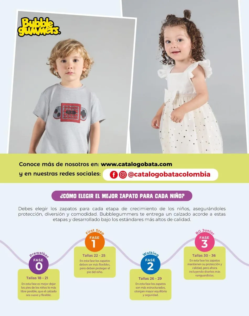 A medida que los niños crecen los amigos se van tornando cada vez más importantes en sus vidas, un niño que crece con salud siempre querrá tener a sus amigos cerca y con ellos aprenderá a conocer el mundo jugando. En la línea especial de Bubble Gummers, “Friends Forever”, vamos a destacar la importancia de los vínculos de amor. Cuando los niños están en la fase de caminadores necesitan un zapato que les brinde mayor equilibrio y seguridad en sus movimientos, en esta etapa del crecimiento es cuando empiezan a sociabilizar más por motivación propia: te acercamos las mejores propuestas en calzados para tus niños en esta fase de la vida en la que cada día es un descubrimiento. Los vestidos y conjuntos por dos prendas más bonitos están en esta línea exclusiva, en esta catálogo Bata Kids campaña 6 2025 Colombia pensada para acompañar a los niños de pies a cabeza con el mejor estilo y calidad que solo Bata Kids te garantiza.