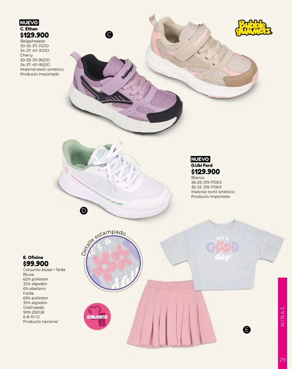 Por su parte, el calzado deportivo sigue imponiéndose como el más práctico de todos. Los detalles de brillo, con estampados de flores o estrellas, pueden ser justo lo que este mes tus hijas quieran pedir de este catálogo.