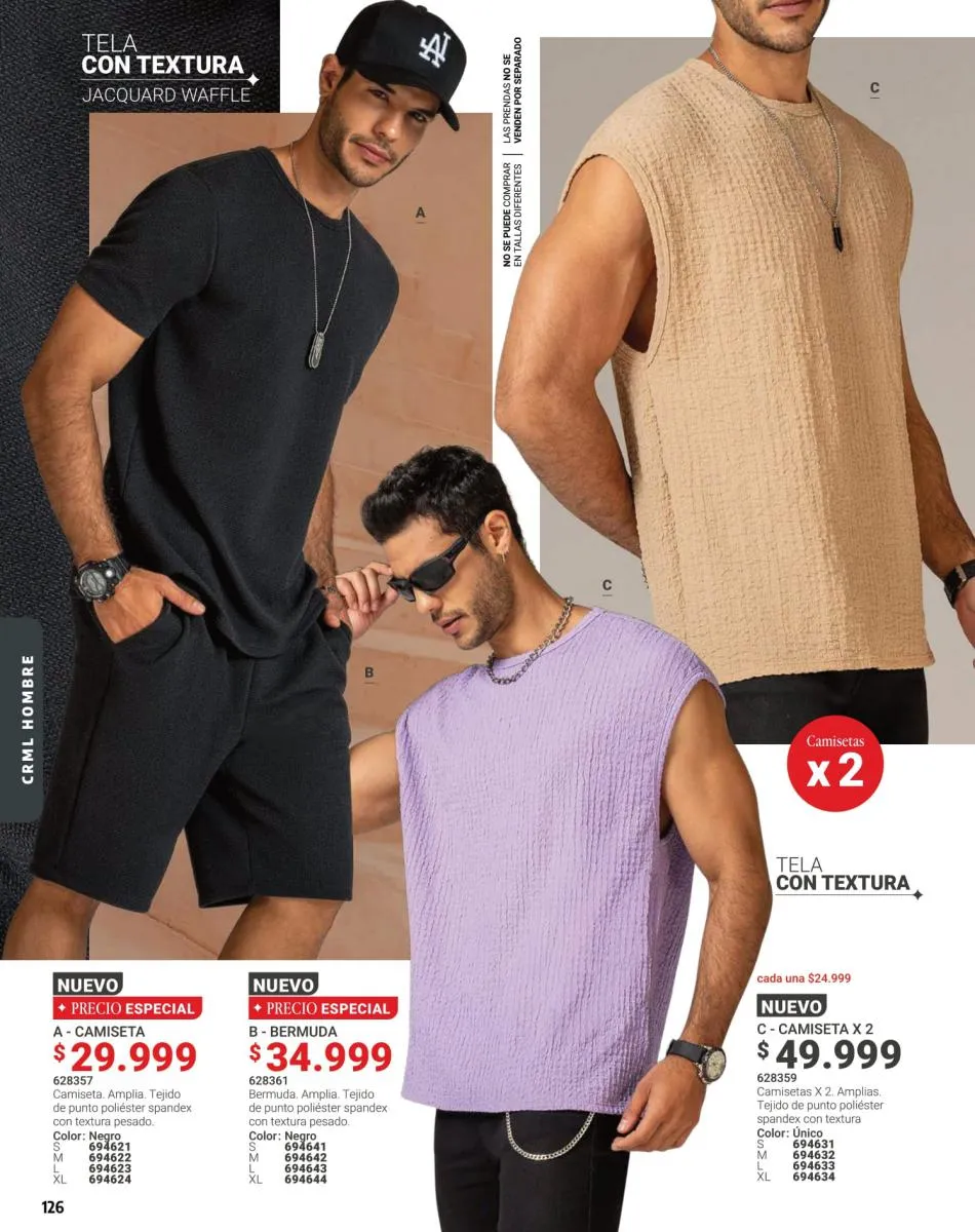 Ten todo bajo control con nuestras prendas exclusivas para que tu figura se vea siempre perfecta. En moda teens las propuestas más innovadoras están en esta catálogo Carmel campaña 1 2026 Colombia, diseños inspirados en las tendencias de moda del mundo entero llegaron para acompañarte durante todo el año a precios especiales. Para ellos no te pierdas la promoción en jeans súper skinny de las páginas 106 y 107, ofertas especiales y conjuntos para usar en pareja que son un verdadero sueño. ¡Y sorpréndete con ofertas exclusivas al final del catálogo Carmel campaña 1 2026!