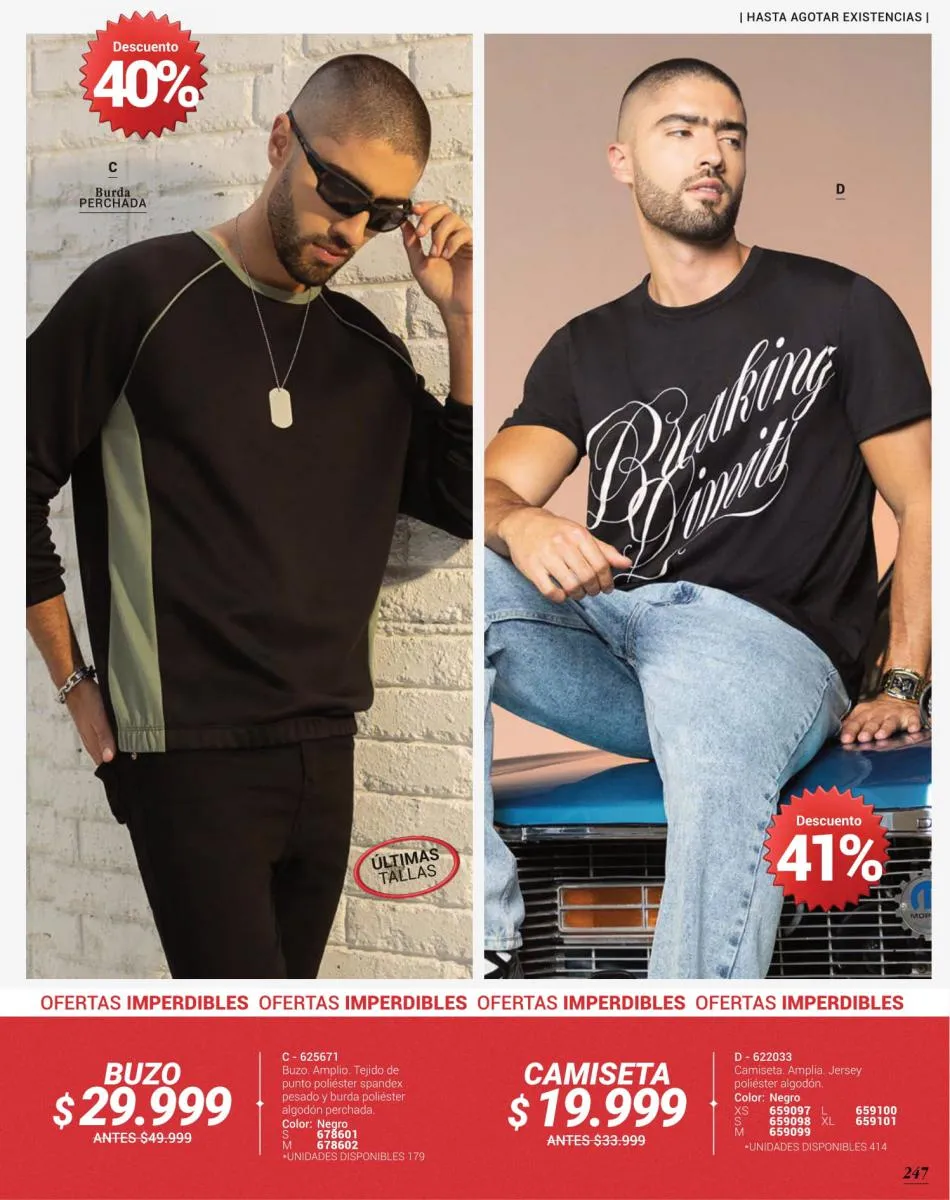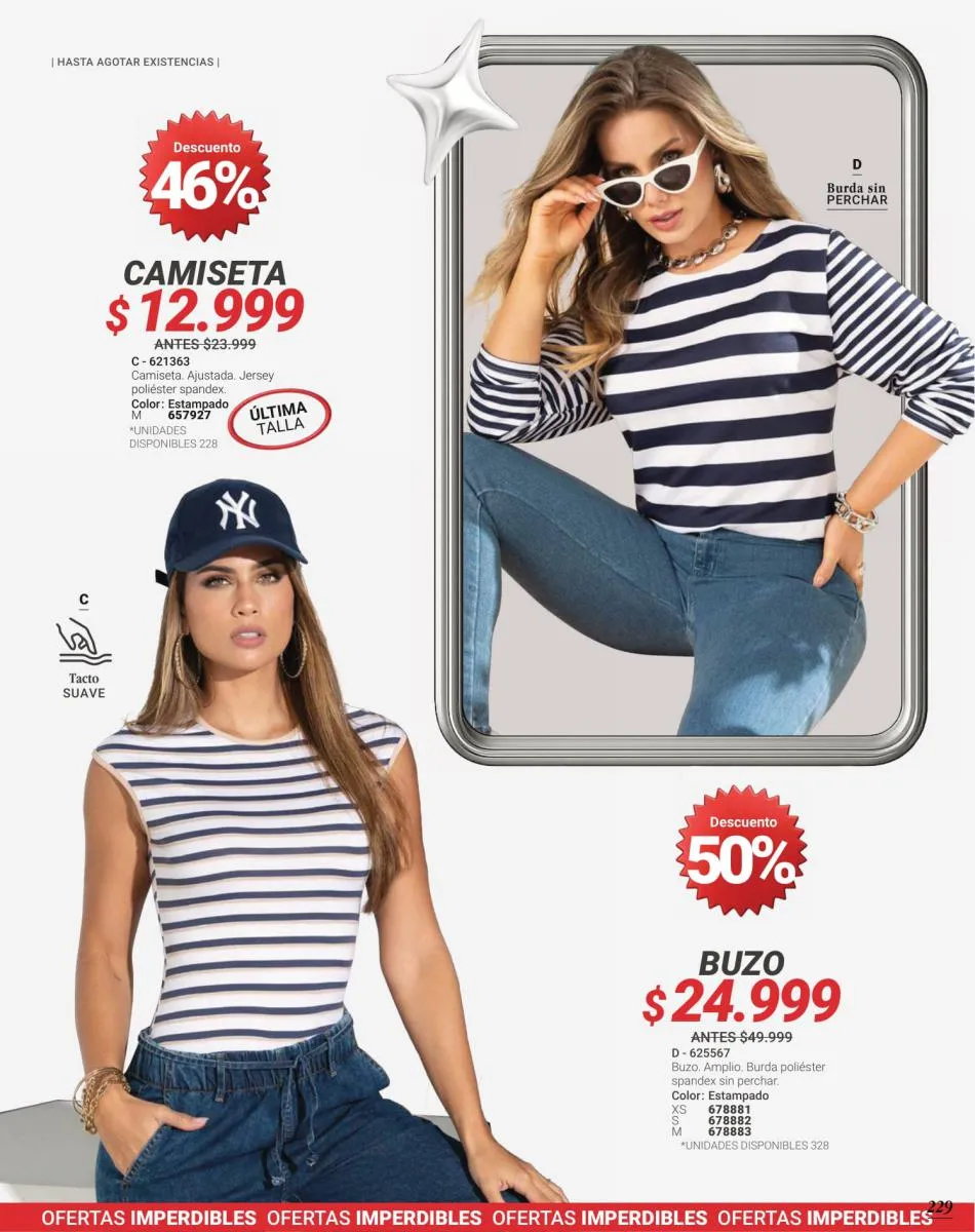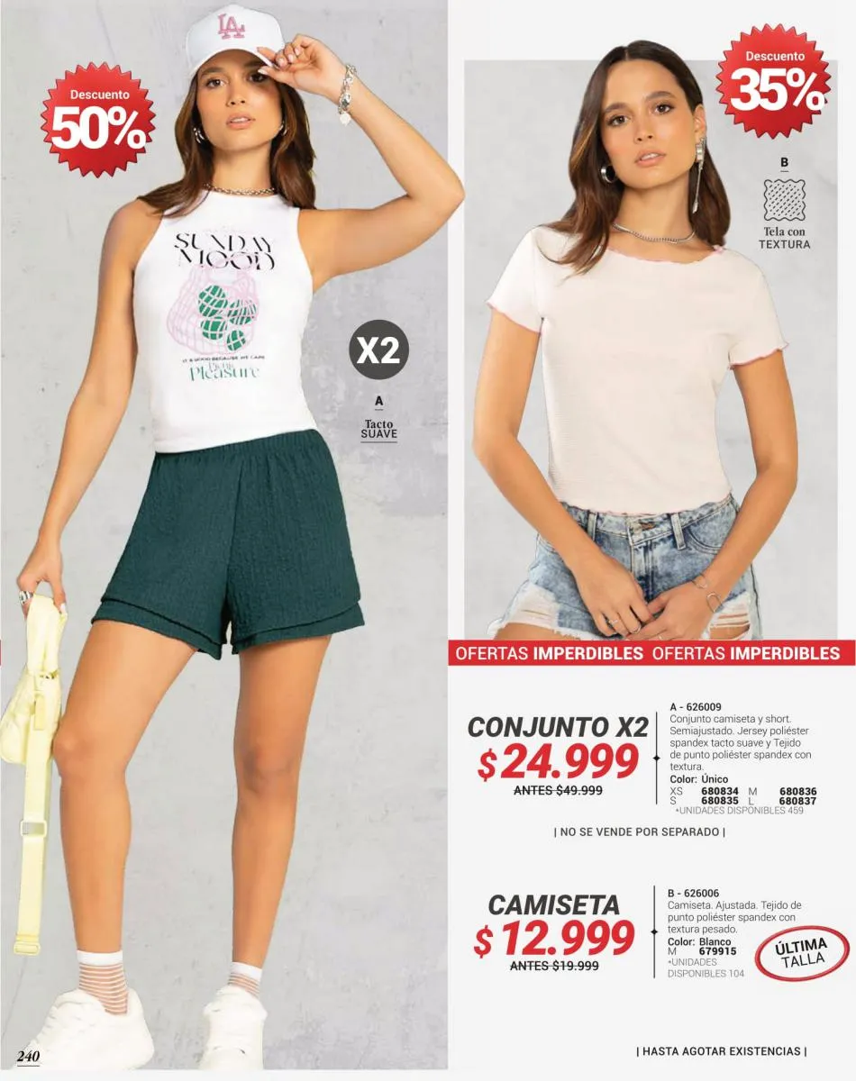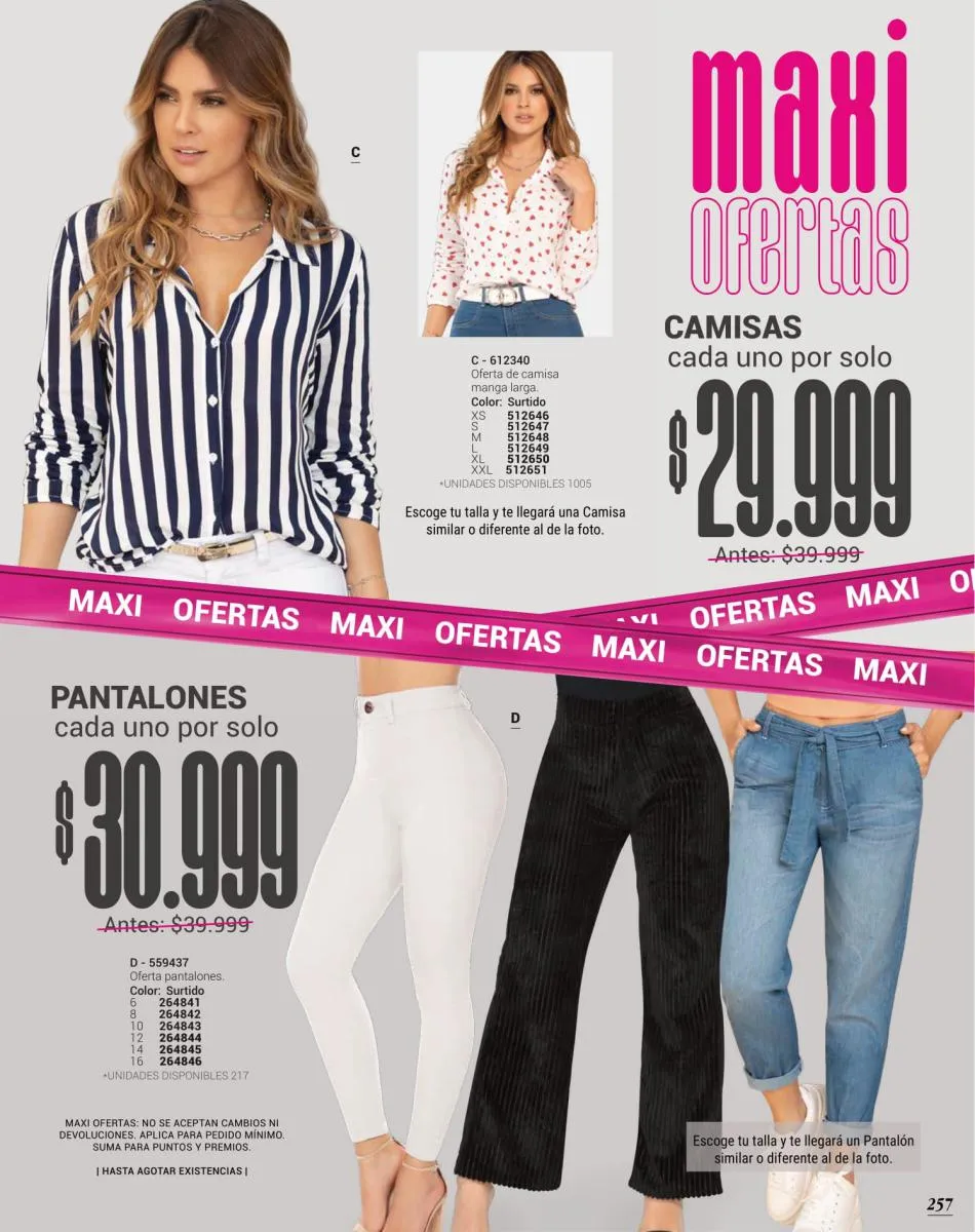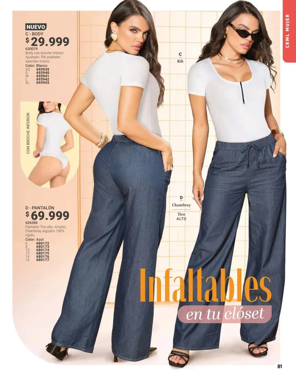 ¿Conoces los jeans Malibú? Los jeans que más van a resaltar tus curvas y delinear tu figura están justo aquí, en opciones de tiro alto y de tiro bajo, en color negro y en color azul, básicos infaltables en tu guardarropa que te dejaran con la boca abierta. ¡Encuéntralos en la página 27! Además encuentra bodys con descuentos especiales, un vestido soñado en la página 19 del que te enamorarás a primera vista, las camisas más bonitas a un precio especial, camisetas en dos por uno y con ofertas imperdibles… y una variedad única en Colombia de los vestidos más hermosos que nunca hayas visto.