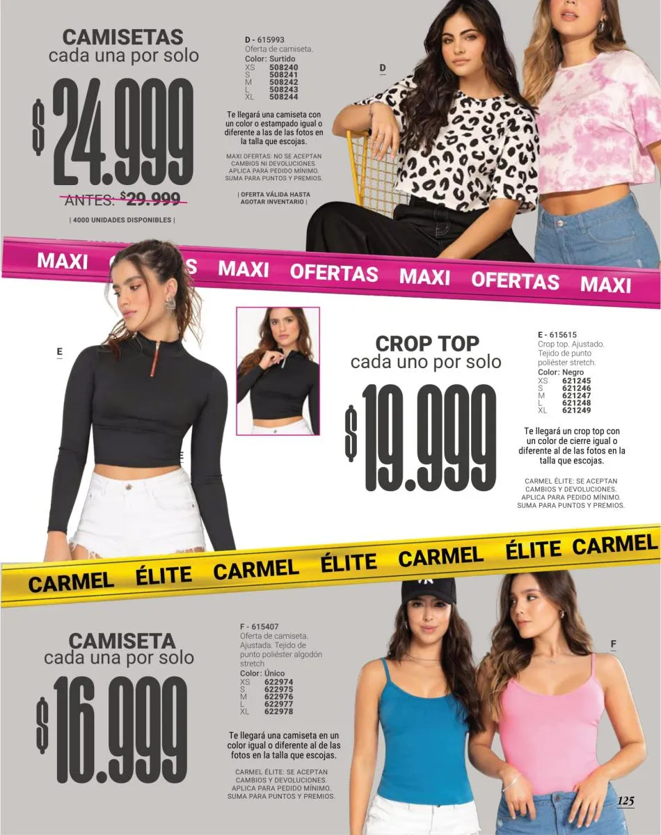 Esta catálogo Carmel campaña 18 2025 Colombia trae las piezas que siempre buscas para lucir sensacional mientras cumples con tus compromisos diarios. Para tu día a día, esta colección de Carmel trae las blusas, camisetas y crop top más cómodas y atractivas para lucir estupendamente.