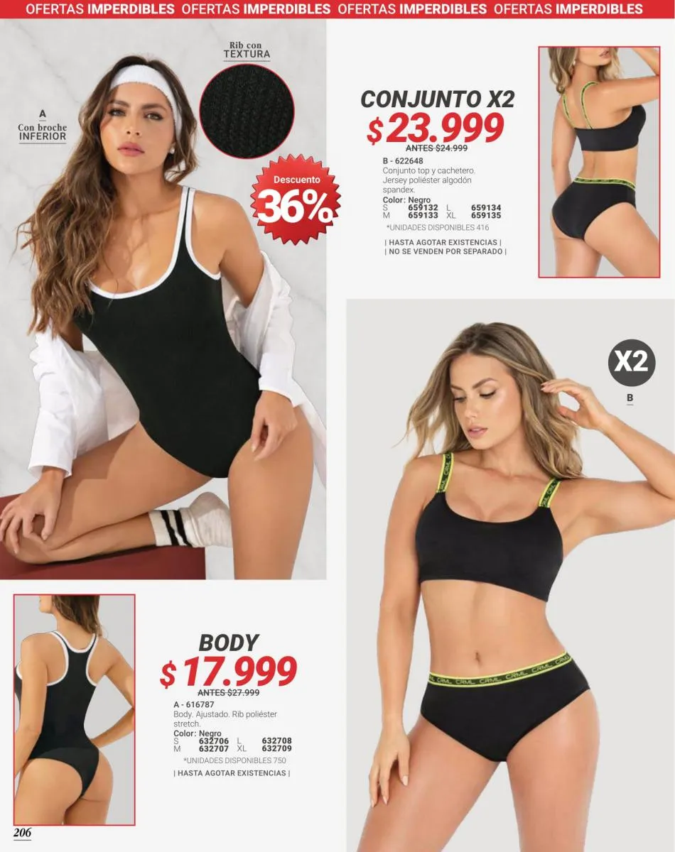 Destacamos los cacheteros en la sección de ofertas exclusivas, así como los conjuntos, bodys y hasta las pendas reductoras. Todas de telas exquisitas, duraderas y que las sentirás muy bien en tu piel.