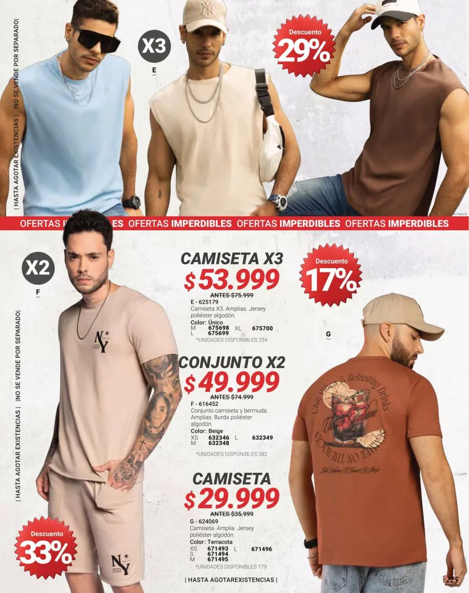 Las ofertas en la sección de caballero son lo mejor que podrás encontrar en esta catálogo Carmel campaña 18 2025 Colombia. Lo mejor de lo mejor en jeans, buzos, polos y bermudas lo puedes encargar este mes a unos precios irresistibles.