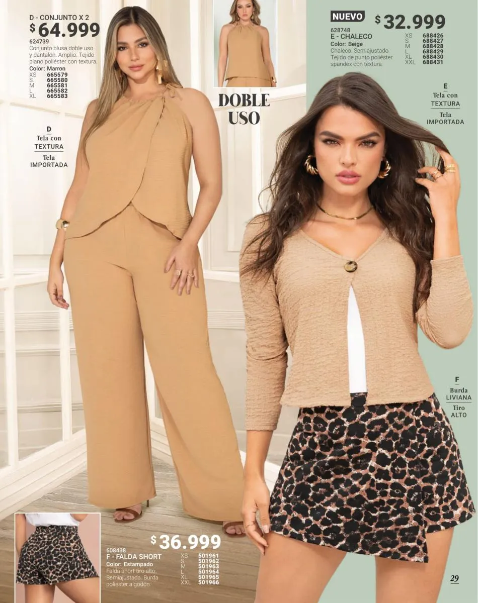 En las piezas inferiores, esta campaña trae modelos de jeans, shorts y faldas que realmente se adaptan a la figura y complementan cada outfit de manera genial. No dejes de incluir los pantalones que esta campaña están mejor que nunca: elegantes, cómodos, con cortes que hacen lucir tus piernas y tu figura en general