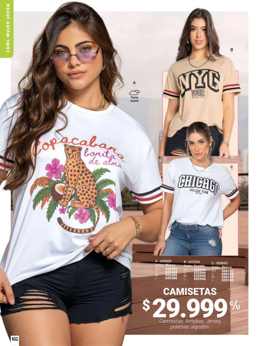 Energízate con la blusa en ojalillo de la página 7 en esta catálogo Carmel campaña 6 2026. Llena tu vida de todos los colores con el soñado vestido largo de la página 4, un vestido que con simpleza impone una mística única, colores y elegancia en una misma prenda, ¡encuéntralo en talles hasta el xxl! Más colores y vitalidad que nunca en camisetas: brillos, contrastes y frases motivacionales en las camisetas que necesitas para revitalizar tu guardarropa con mucha alegría y optimismo.