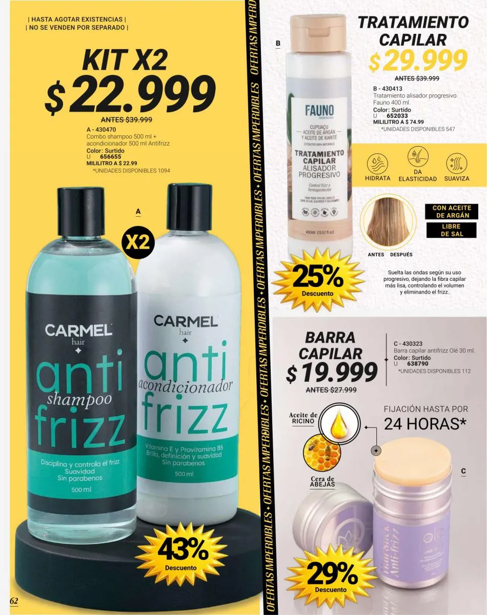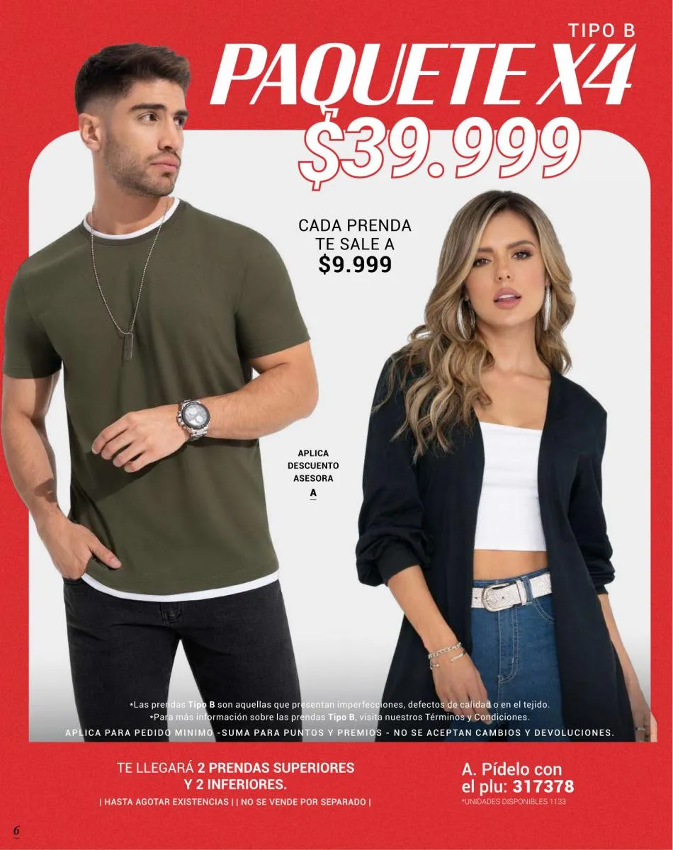 Además encuentra en este catálogo moda para teens, ropa interior y, para ellos, una gran variedad de ofertas y promociones de prendas que son vanguardia y que a los hombres les encantan. No te quedes sin tu outfit de esta catálogo Carmel campaña 6 2026 Colombia, arrasa por donde vayas, llévate todas las miradas contigo, y por sobre todas las cosas, crea tu propio estilo combinando tus prendas de la manera que más te guste, cada tendencia siempre es única para cada persona, ¡anímate y crea tus propios outfit con las oportunidades que te acerca Carmel!