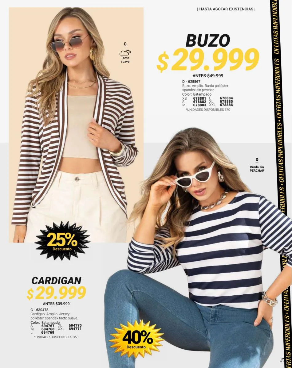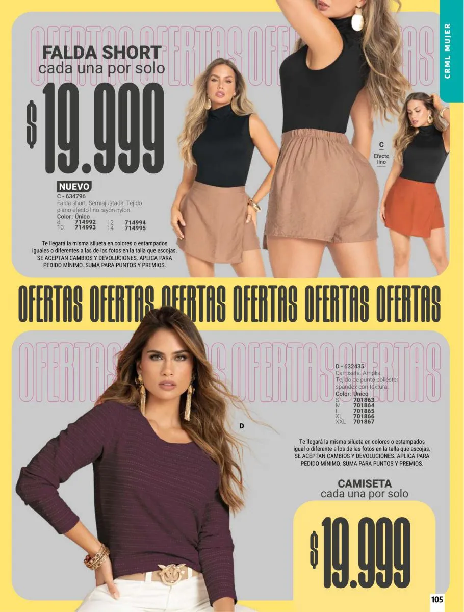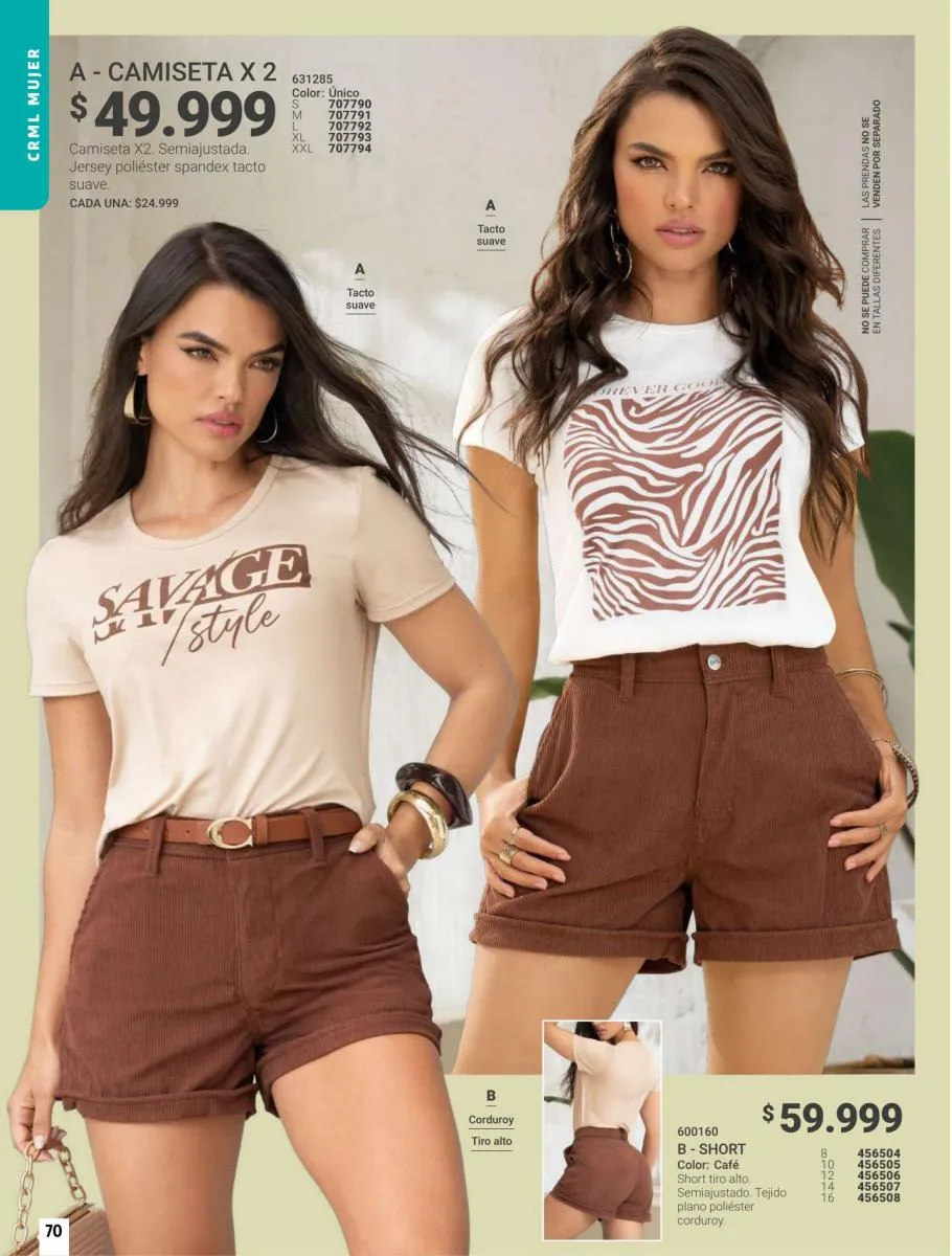 Ten en cuenta que para tener outfits diferentes todos los días no necesitas más que darle rienda suelta a tu creatividad, que tu personalidad sea la guía en cada combinación, una ayuda para que tus elecciones siempre sean perfectas es tener varias prendas de arriba para combinar, por ello tienes en promoción especial trío de crops tops y prendas multiusos en la página 23, también promociones imperdibles en camisetas de los más variados estilos, ¡elige tu preferida!
