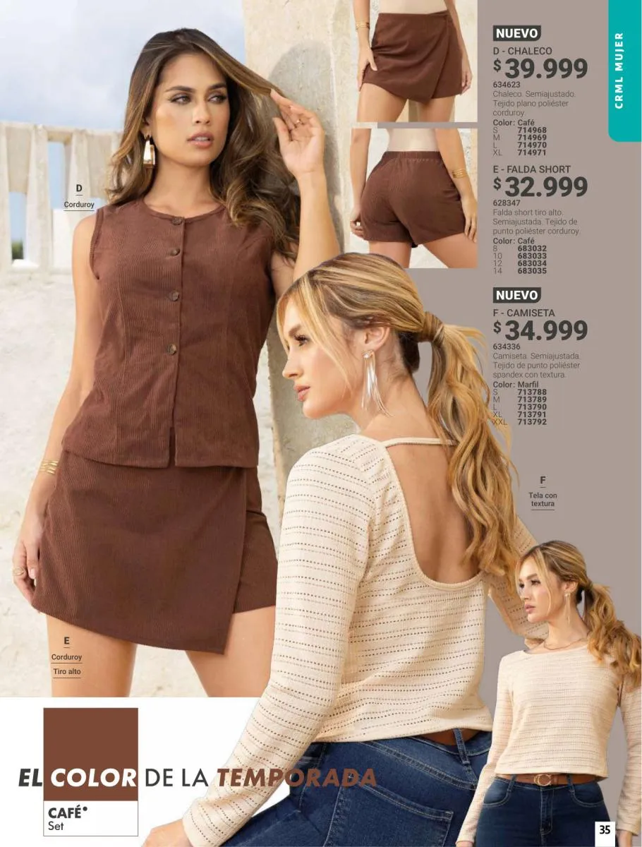 El color terracota es un color que nos recuerda a la tierra más fértil, es un color muy cálido y elegante que está en tendencia, y en Carmel tenemos propuestas para que tu look siempre esté a la vanguardia: puedes elegir, por ejemplo, cardigan en terracota en la página 26 o un vestido infaltable en tu closet en la página 28, prendas tan intensas que inspiran la fuerza de la misma naturaleza en quien las use, encuentra más oportunidades para lucir este color increíble en las páginas de este catálogo Carmel campaña 8 2026 Colombia.