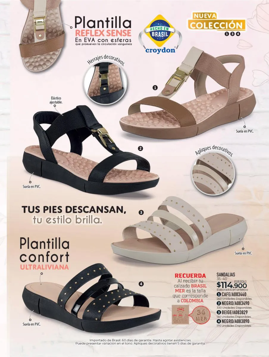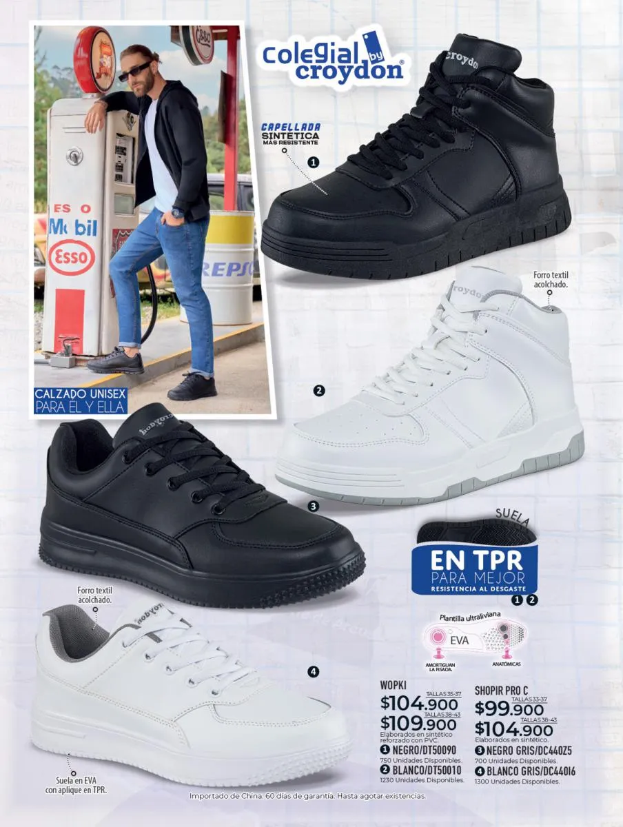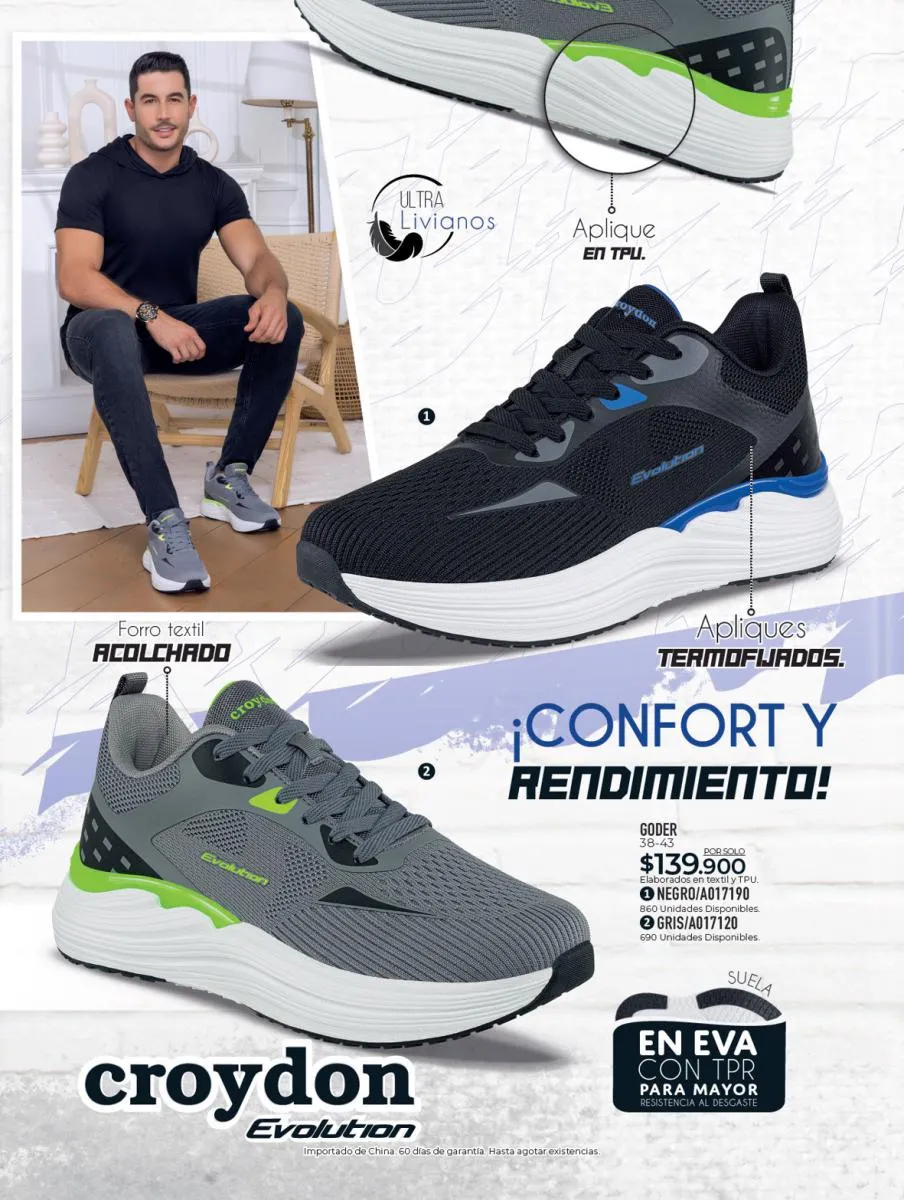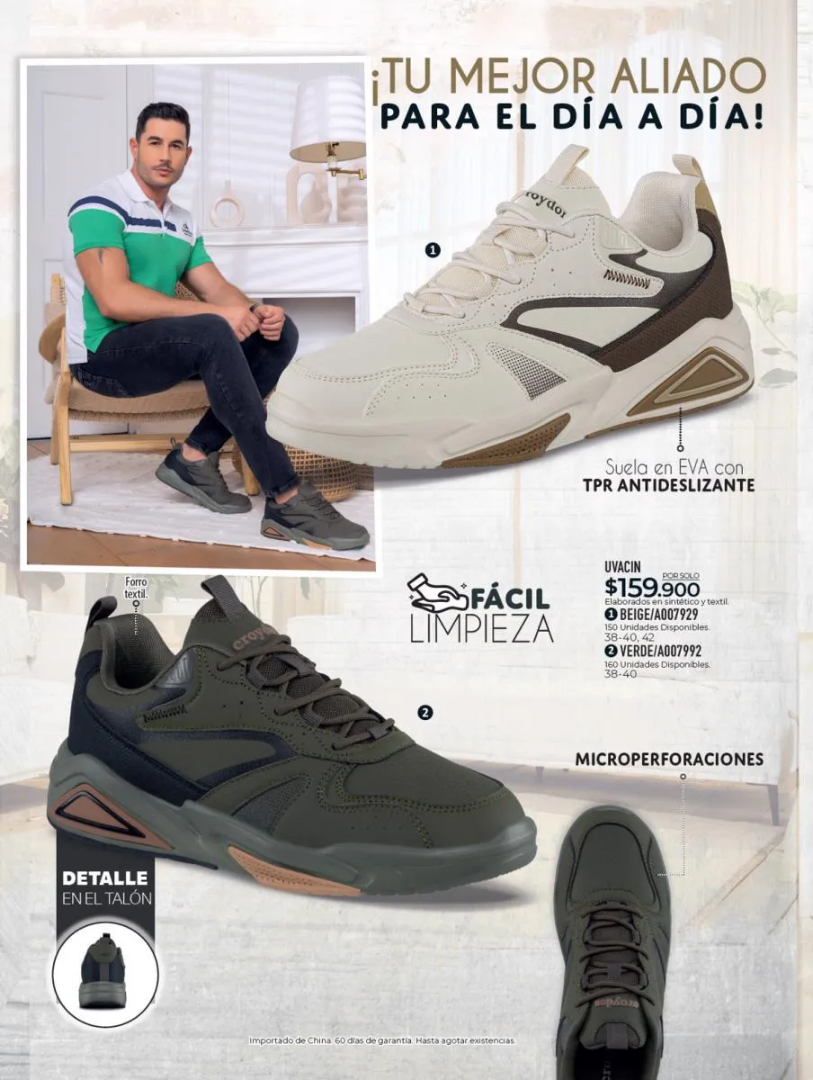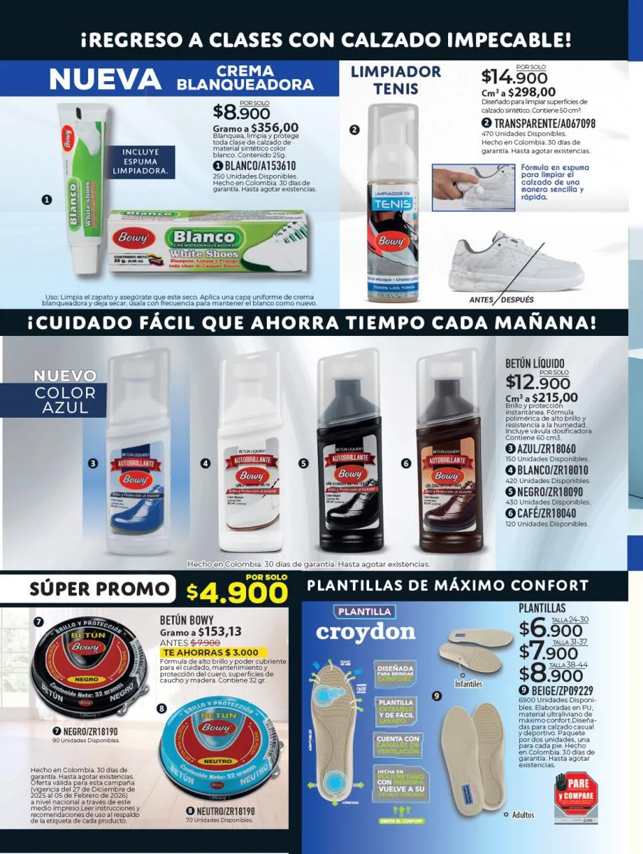 Te recomendamos los productos de cuidado del calzado que encontrarás en este catálogo Croydon campaña 1 2026 Colombia, tenemos productos disponibles para el cuidado de tus calzados de cuero liso, y también productos para el cuidado de zapatos deportivos de lona y sintéticos.