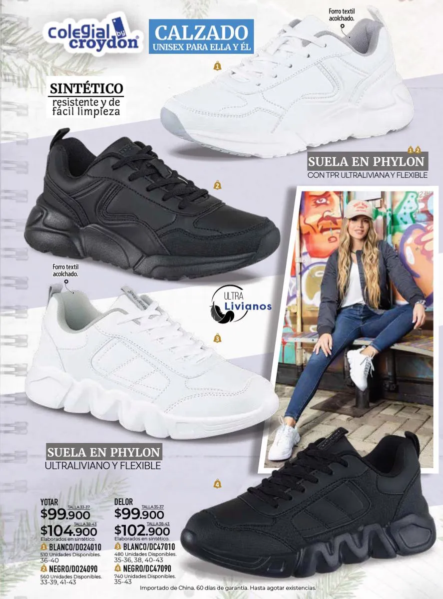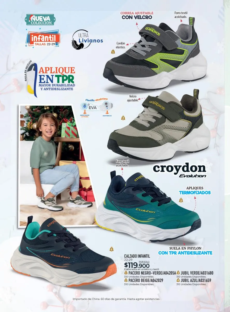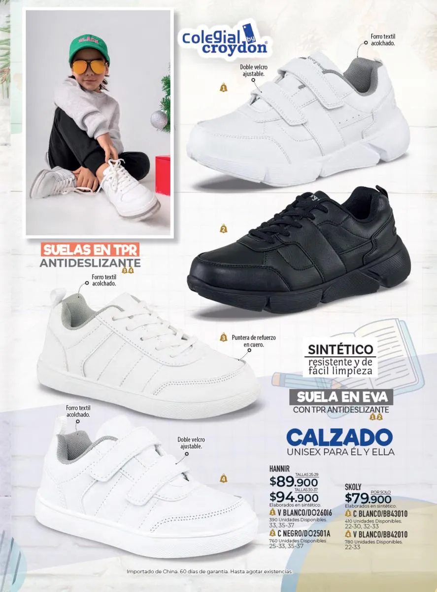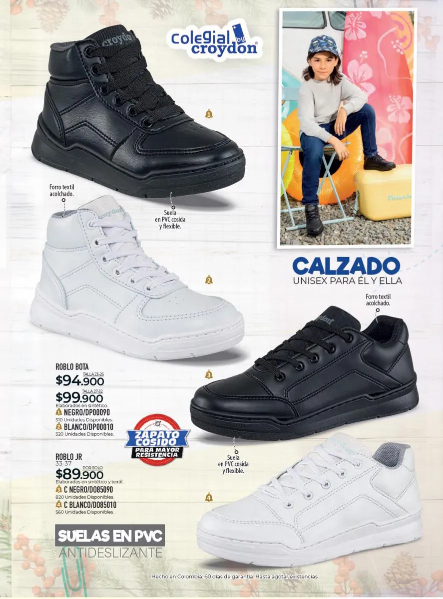 Todo el calzado para damas, caballero y niños (con diseños de personajes) está aquí en Croydon Colombia.
