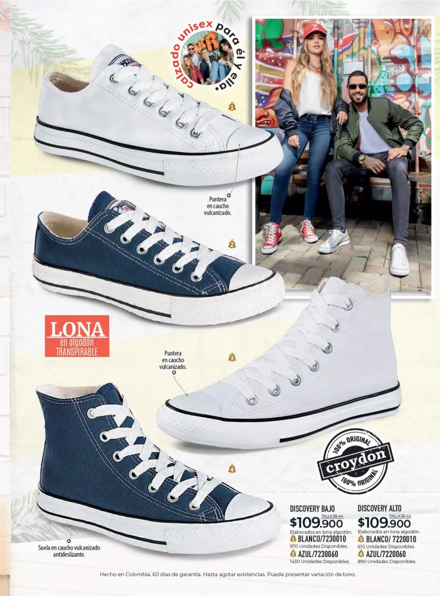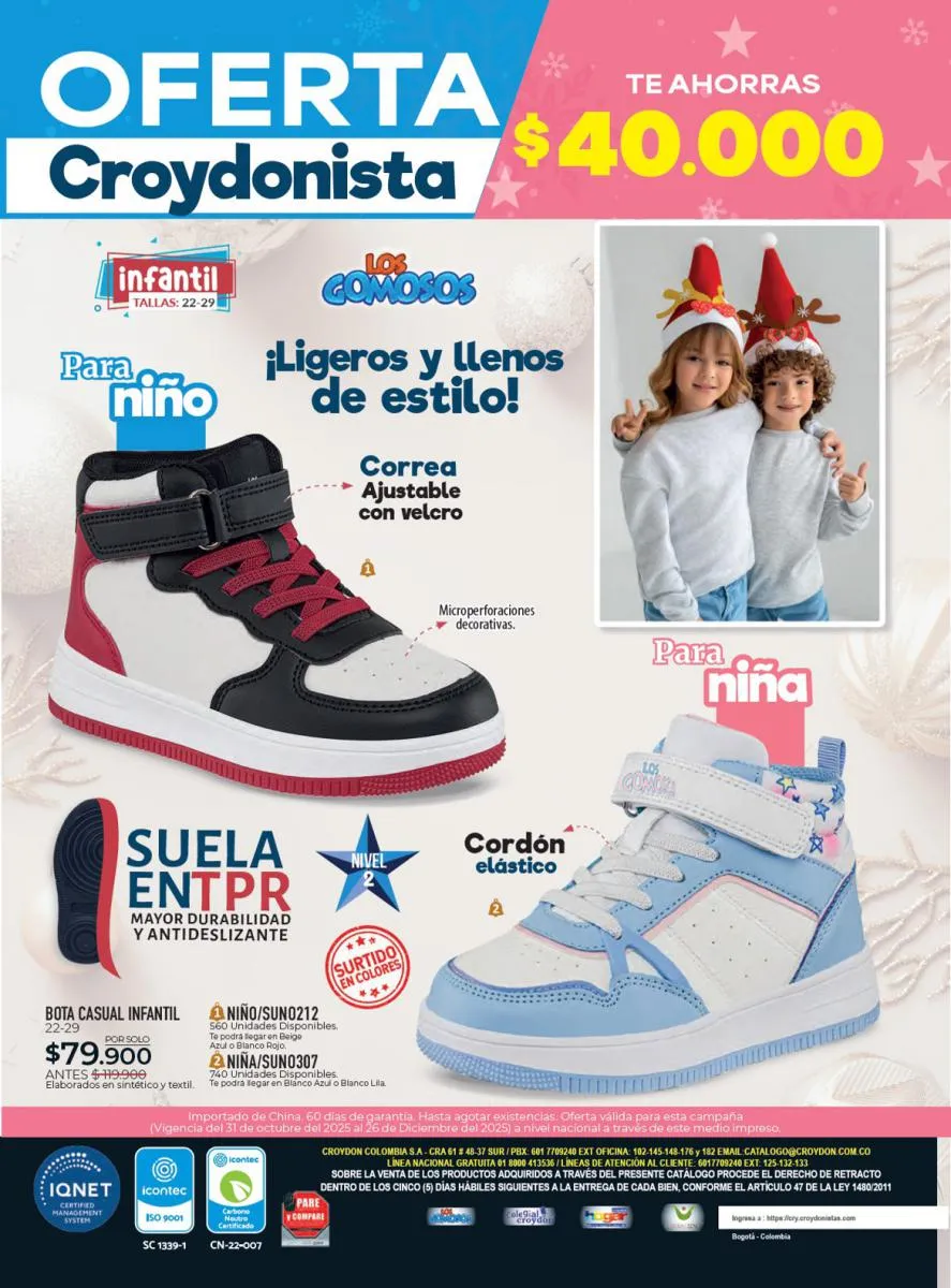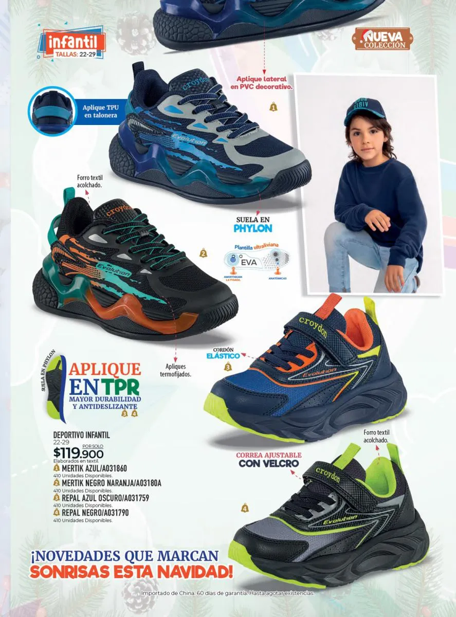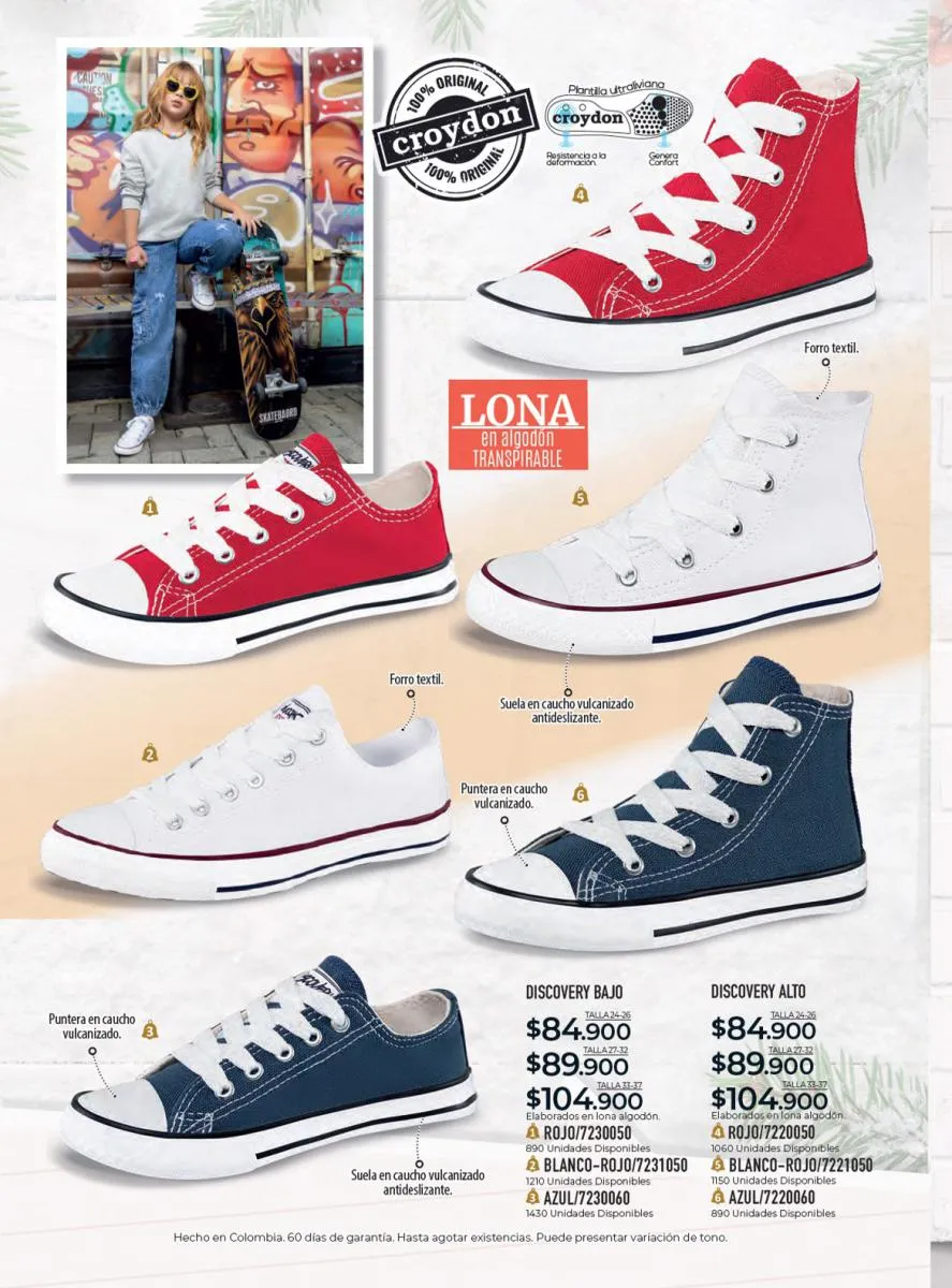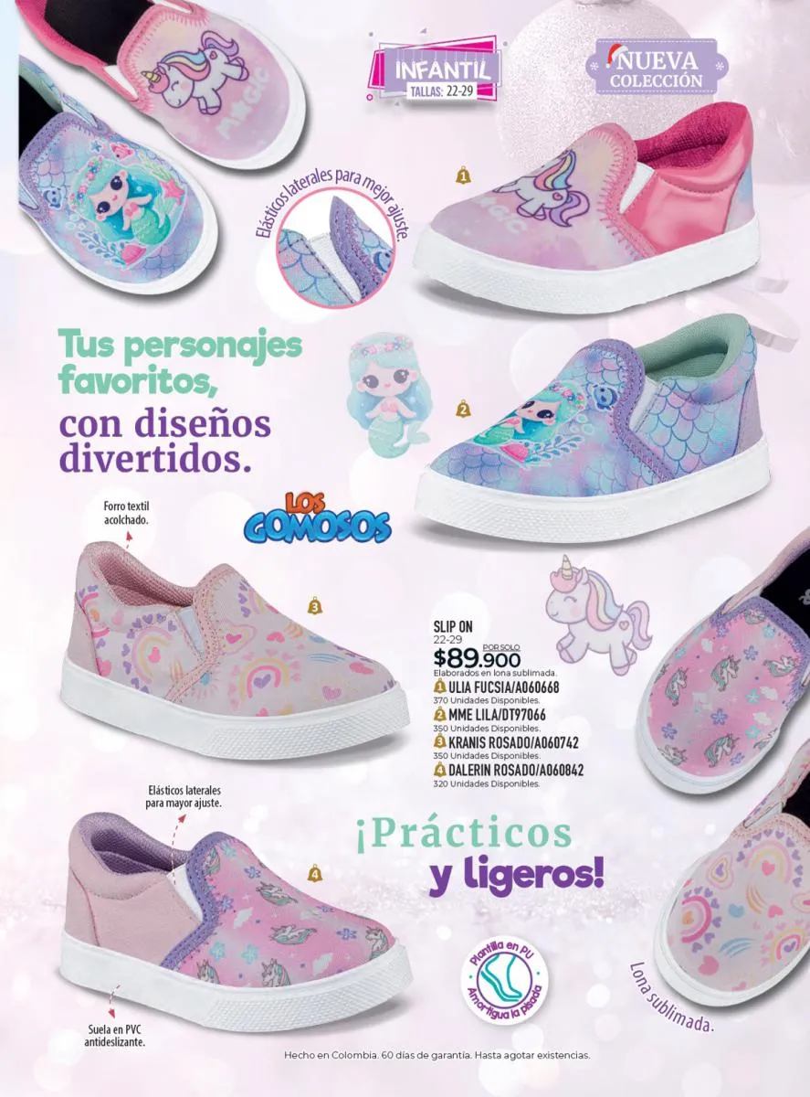 Todo el calzado para damas, caballero y niños (con diseños de personajes) está aquí en Croydon Colombia.