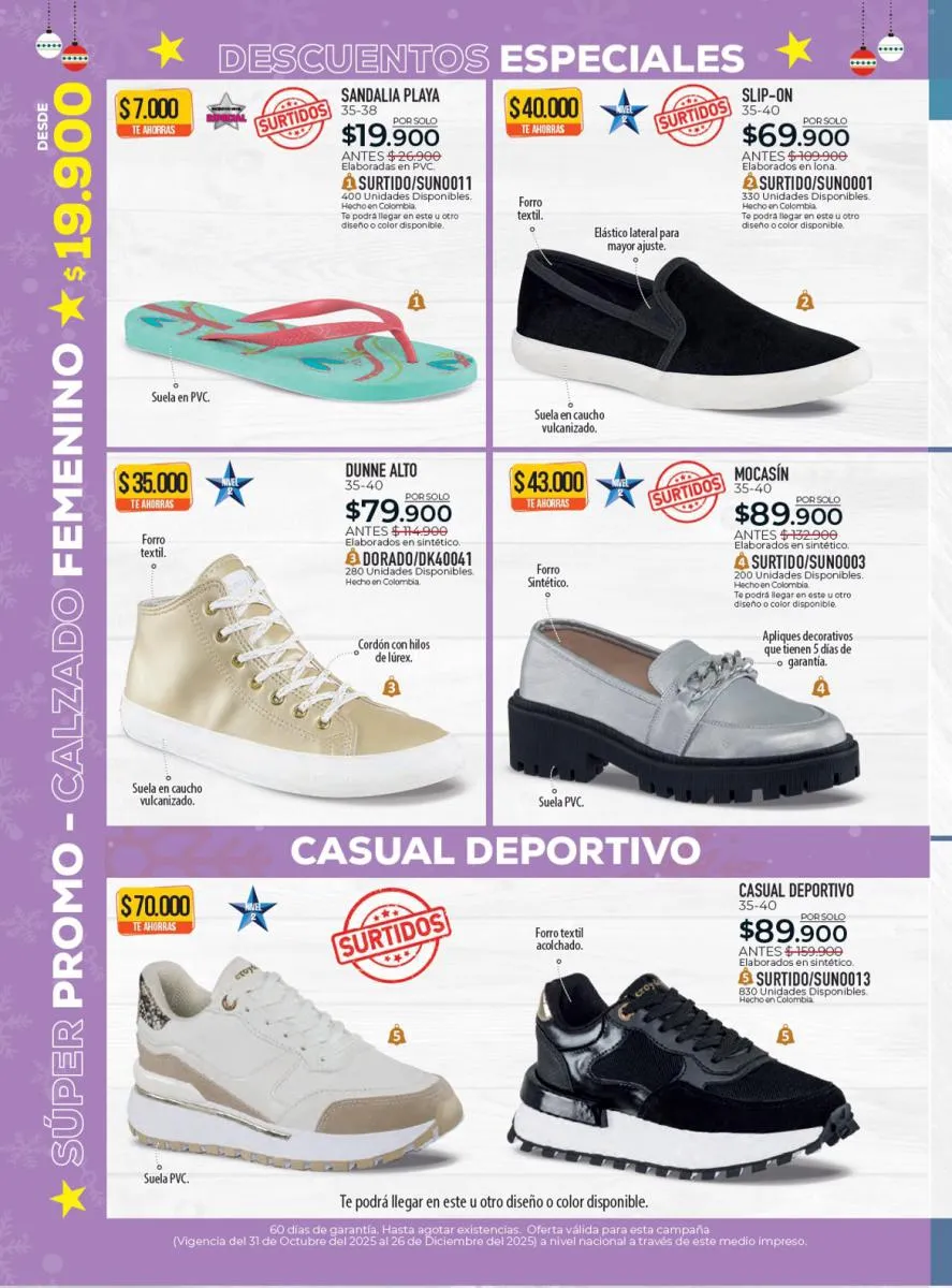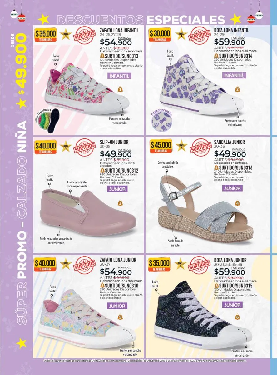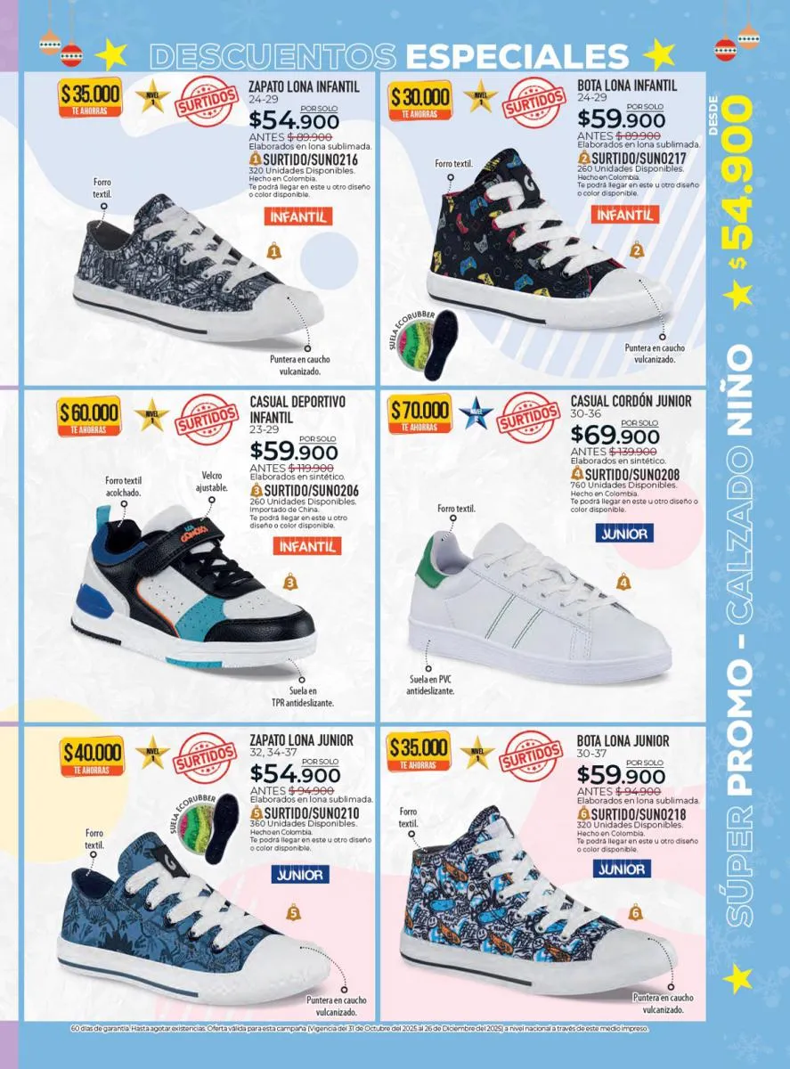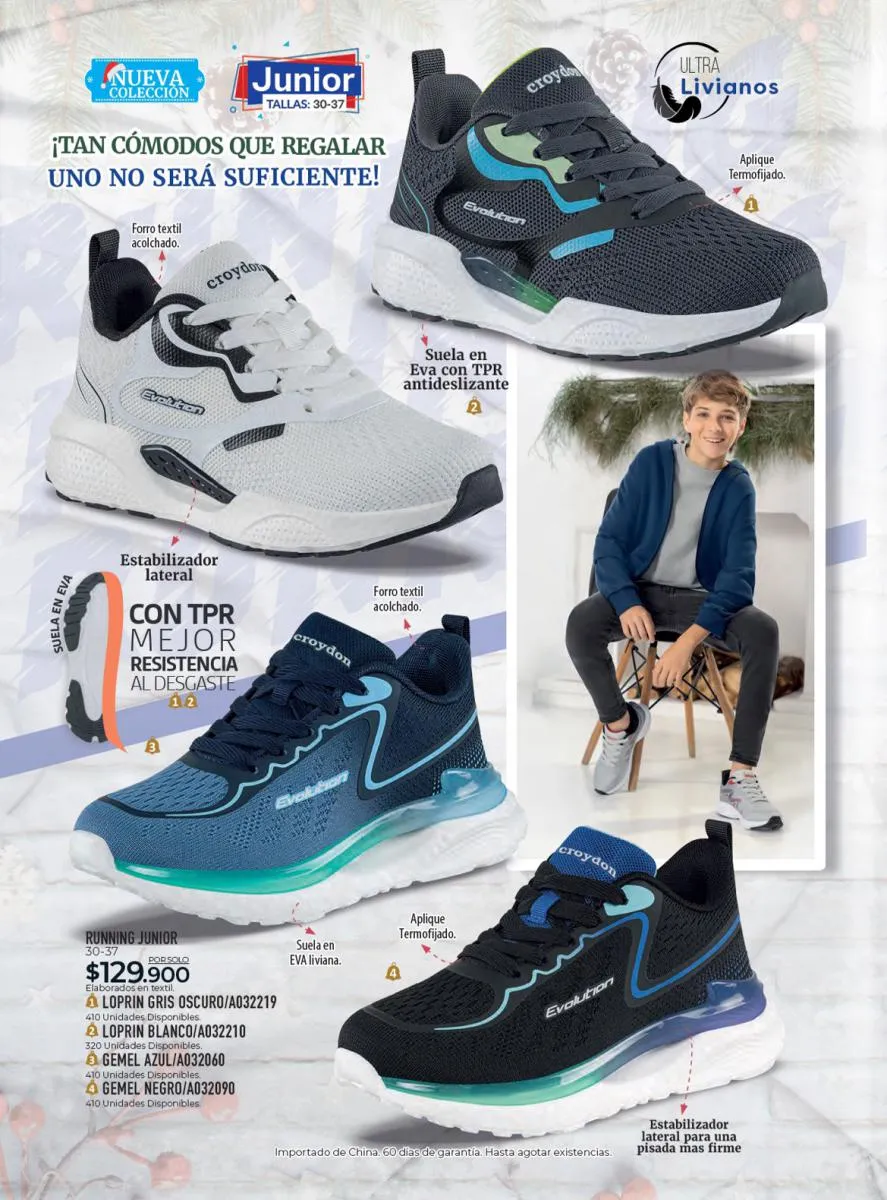 Todo el calzado para damas, caballero y niños (con diseños de personajes) está aquí en Croydon Colombia.