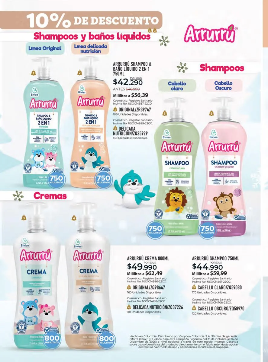 - Y para los bebés la línea Arrurrú tiene lo mejor para el cuidado de su piel y cabello.