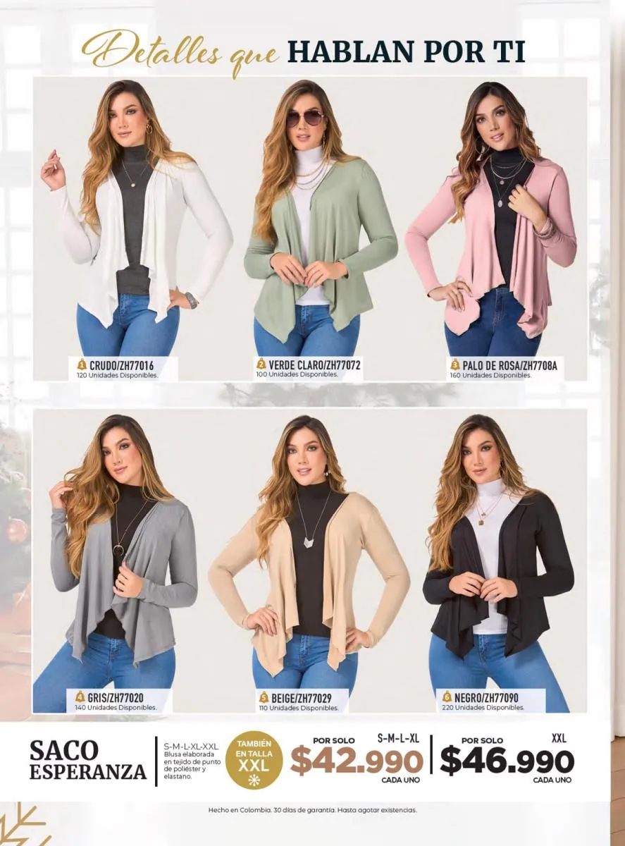 Y si de ropa exterior se trata, las mejores piezas las tienes en esta Croydon campaña 9 2025: las blusas con anudados de lazo o tela metalizada, los buzos tejidos, los vestidos cortos con forro interno, los enterizos y hasta las chaquetas, están a unos súper precios, imposibles de perderse.