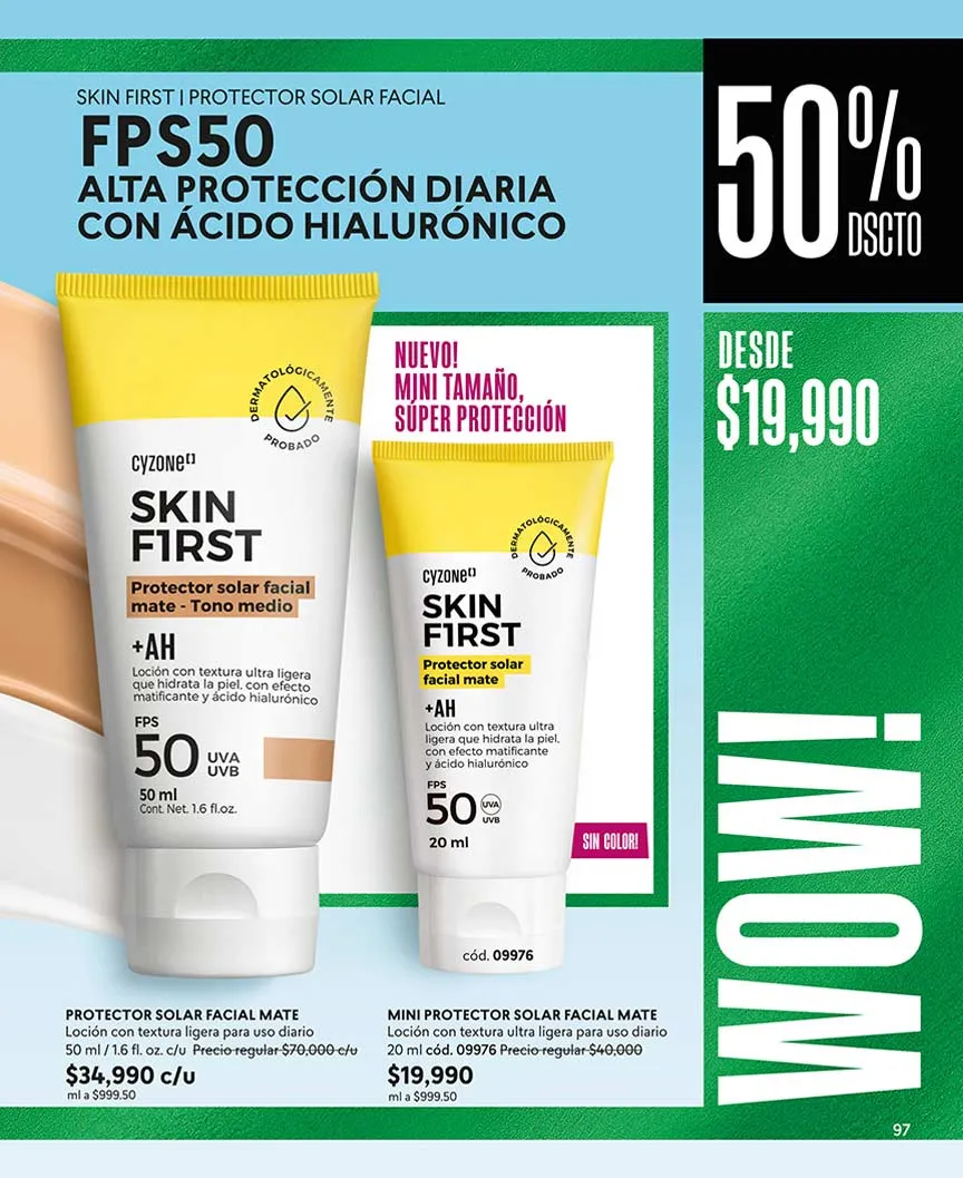 En esta catálogo Cyzone campaña 17 2025 Colombia, las líneas de cuidado facial como Skin Firts tienen excelentes productos pensados para revitalizar tu rostro. No dejes de pedir el reductor de ojeras, la limpiadora en gel o el exfoliante con un descuento que seguro te encantará.