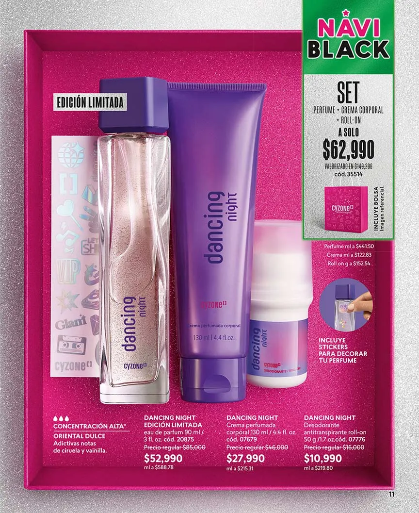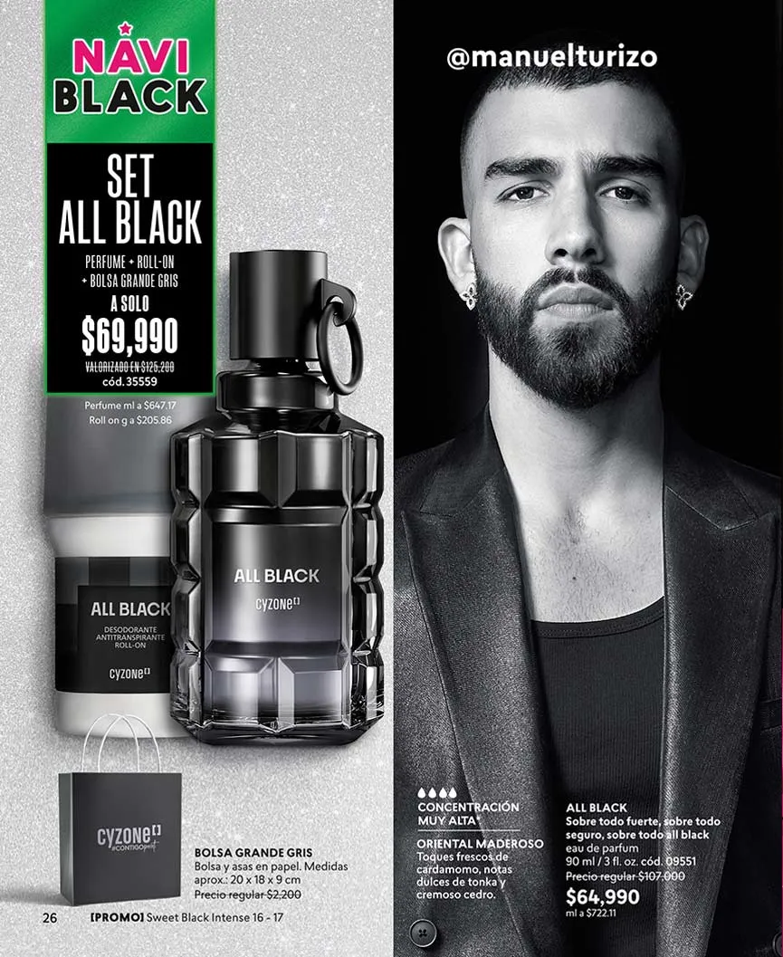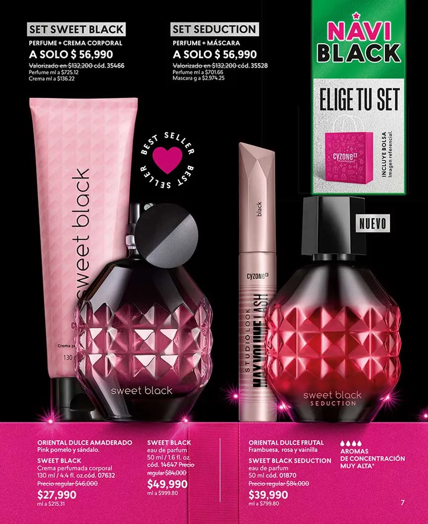 En esta campaña Cyzone sugiere regalar fragancias, especial la línea con el kit Sweet Black. El perfume y la loción son un duo excelente para obsequiar, esto gracias a su hermoso estuche.