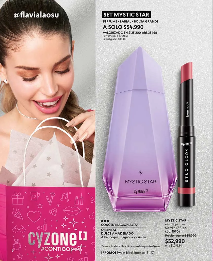 A un precio fabuloso, también puedes conseguir en esta revista los sets que te parezcan más convenientes: fragancia con labial, delineador o incluyendo el bellísimo reloj New Star a un precio imperdible de promoción.