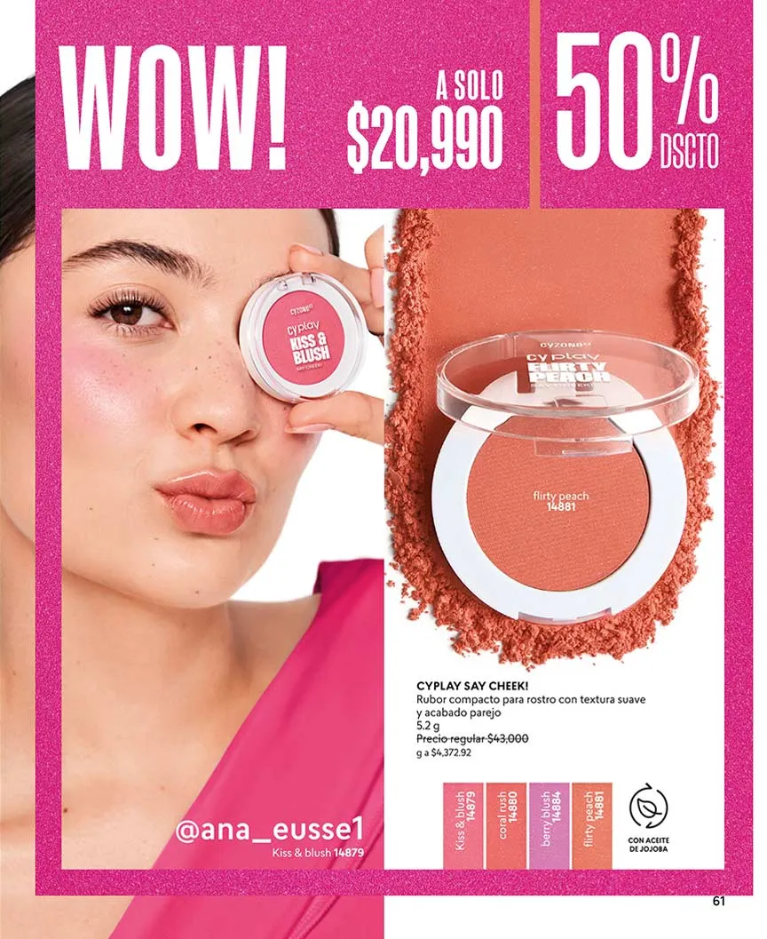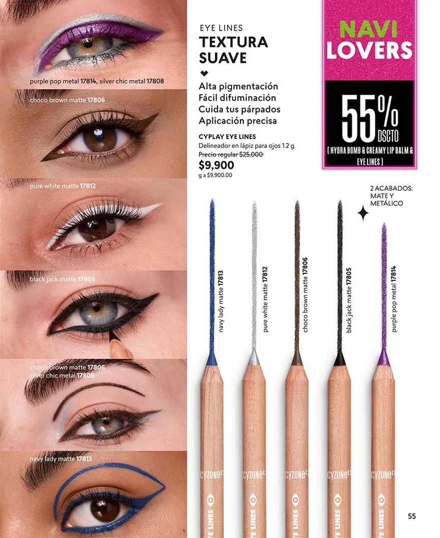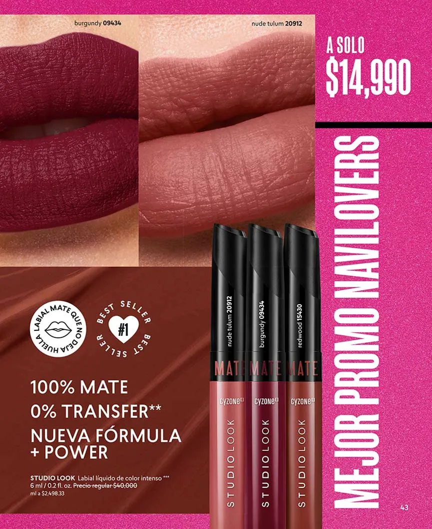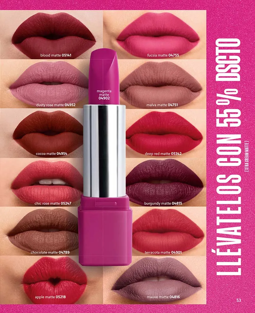 Otra línea que viene a muy buenos precios con productos de calidad y excelente cobertura es CyPlay. Los labiales mate cremosos los consigues a 50% de descuento. Y también puedes llevar a un muy buen precio el set CyPlay rostro.