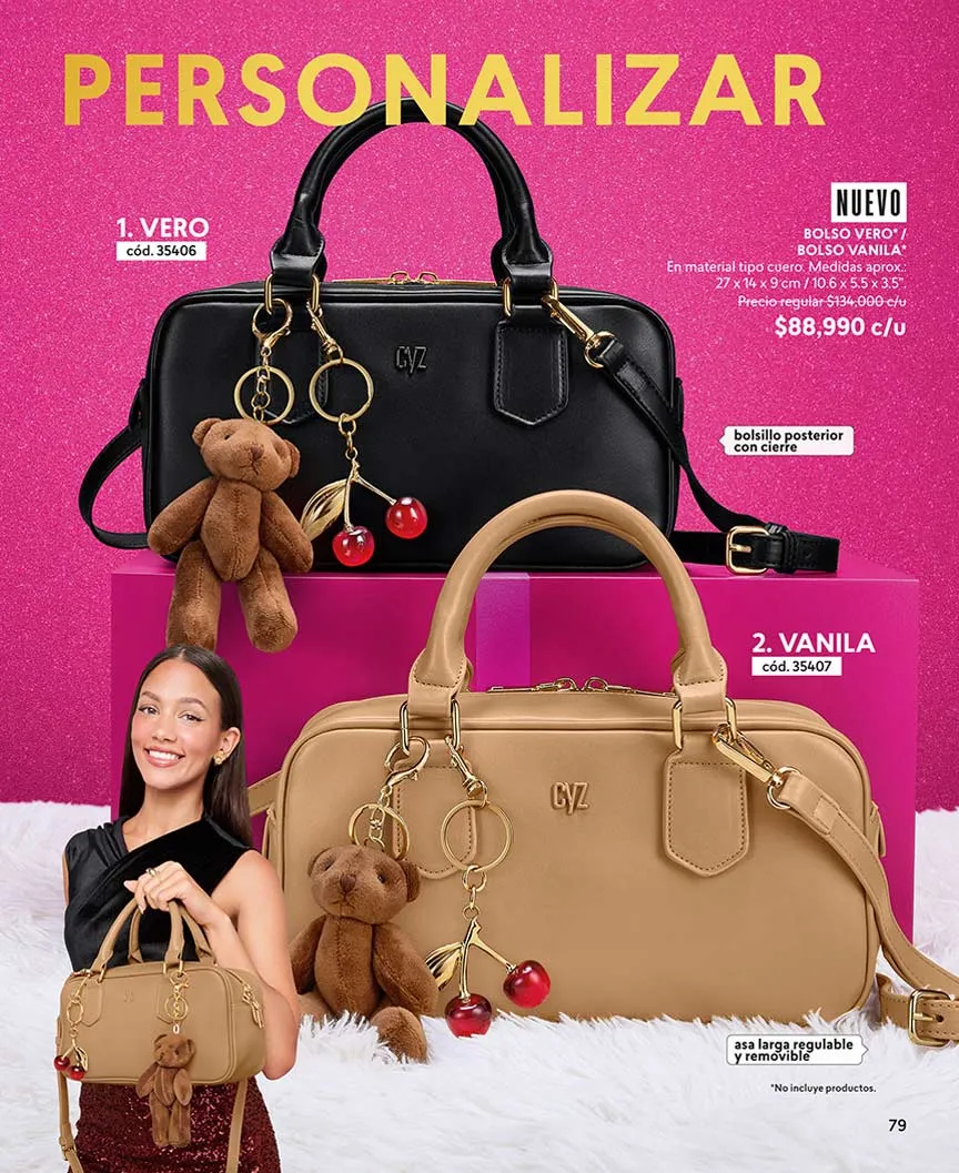 La línea de accesorios de esta catálogo Cyzone campaña 18 2025 es absolutamente divina. No puedes dejar pasar esta oportunidad de llevar monedero Selva, maletín Bele, tu portatodo, morrales, neceser o tu mochila Siria.