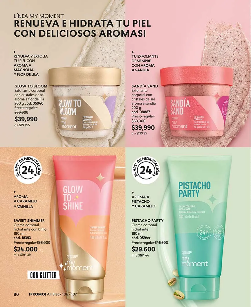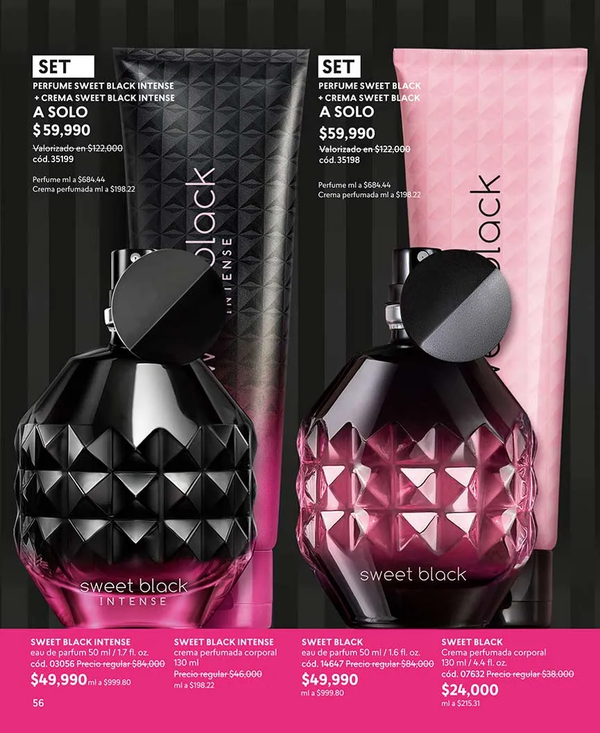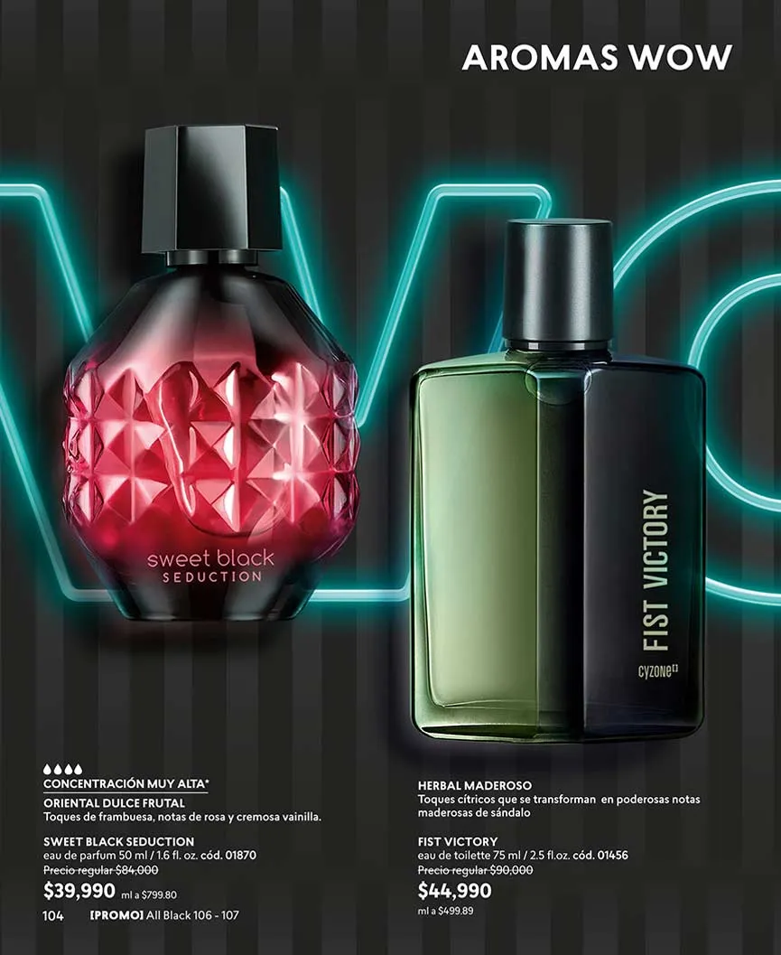 Todas las fragancias hechas con estupendos ingredientes y energizantes aromas, las tendrás en combo con otros productos que realzarán tus atributos sensuales en tu rostro.