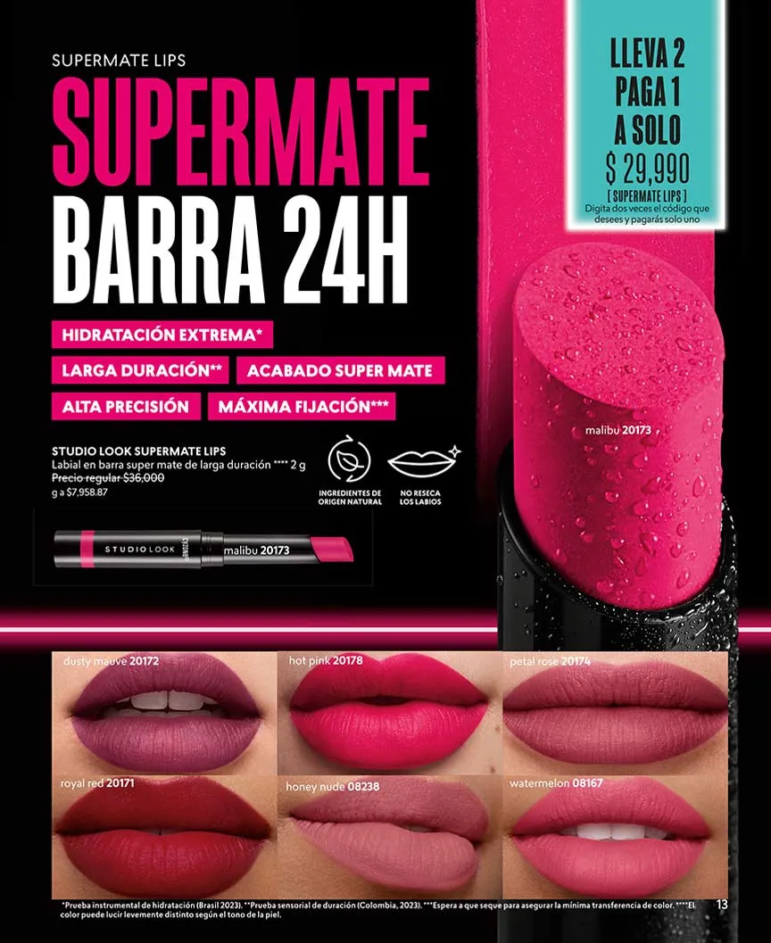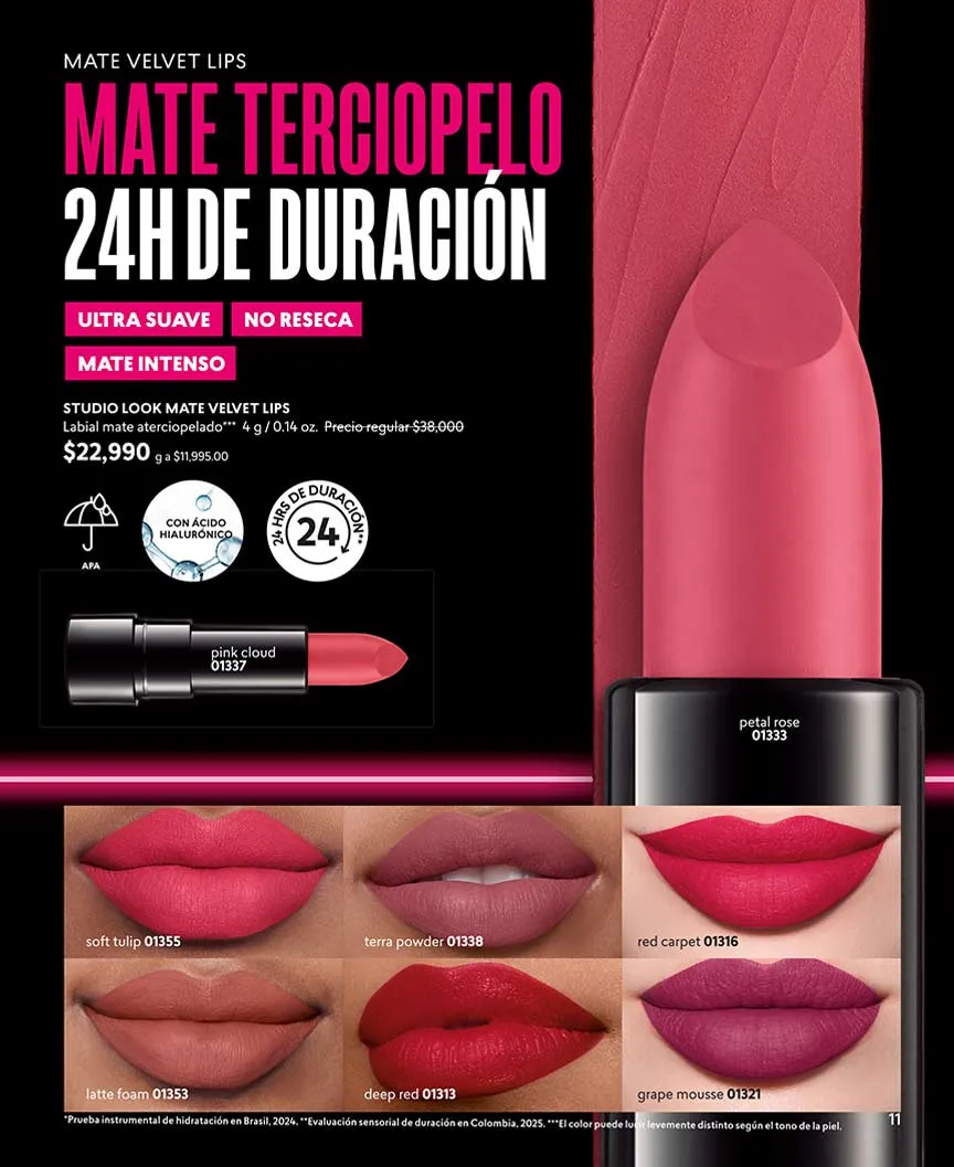Los nuevos labiales de la gama Studio Look en color mate, te permiten tener más intensidad y permanencia del color hasta por 16 horas.