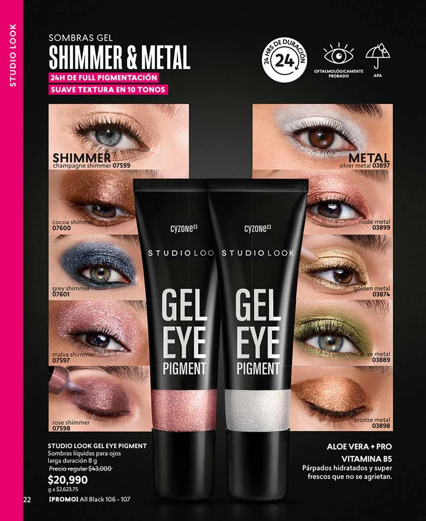 Asimismo, tendrás los más intensos colores para definir tu mirada en párpados, cejas y pestañas con hasta 16 horas de permanencia.