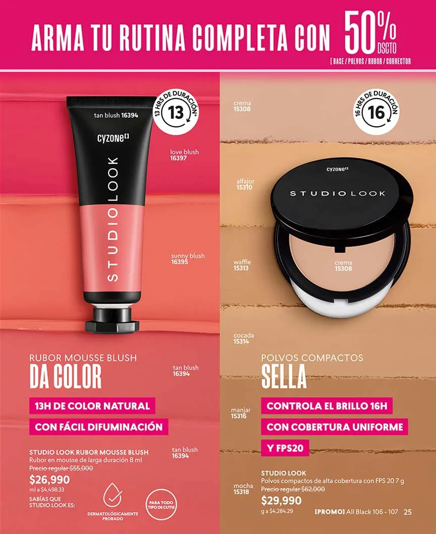Y compleméntalos con lo último en máscaras, delineadores, bases, compactos y los esmaltes de uñas más duraderos, con más definición, full color y volumen, sin perder tu naturalidad.
