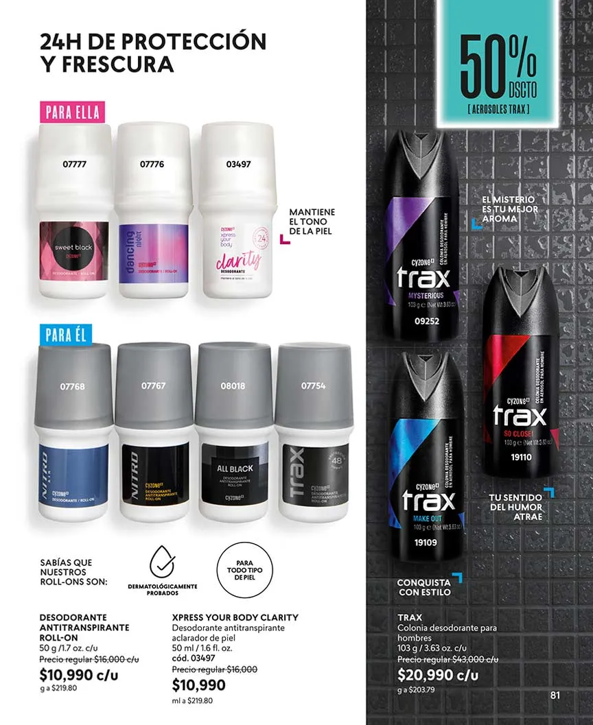 Como sabrás, Cyzone quiere que tu rostro te identifique. Así que cuentas con los más variados productos para el cuidado de rostro, piel, manos y cabello más completo.