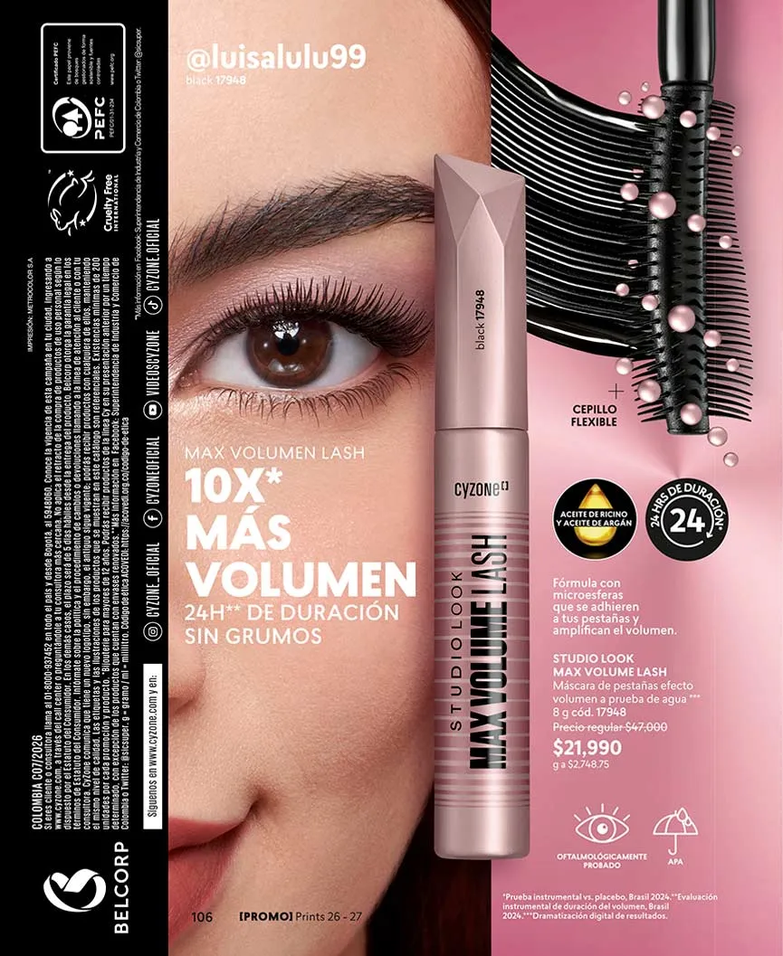 En esta nueva catálogo Cyzone campaña 7 2026 Colombia, tendrás los mejores precios en labiales con un color más intenso, y lo más interesante es que podrás escoger en combo de 2 labiales a un precio ¡de locura!