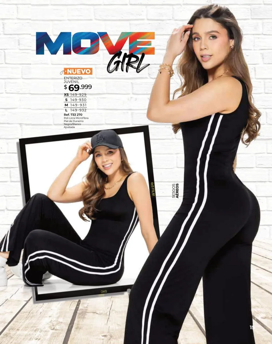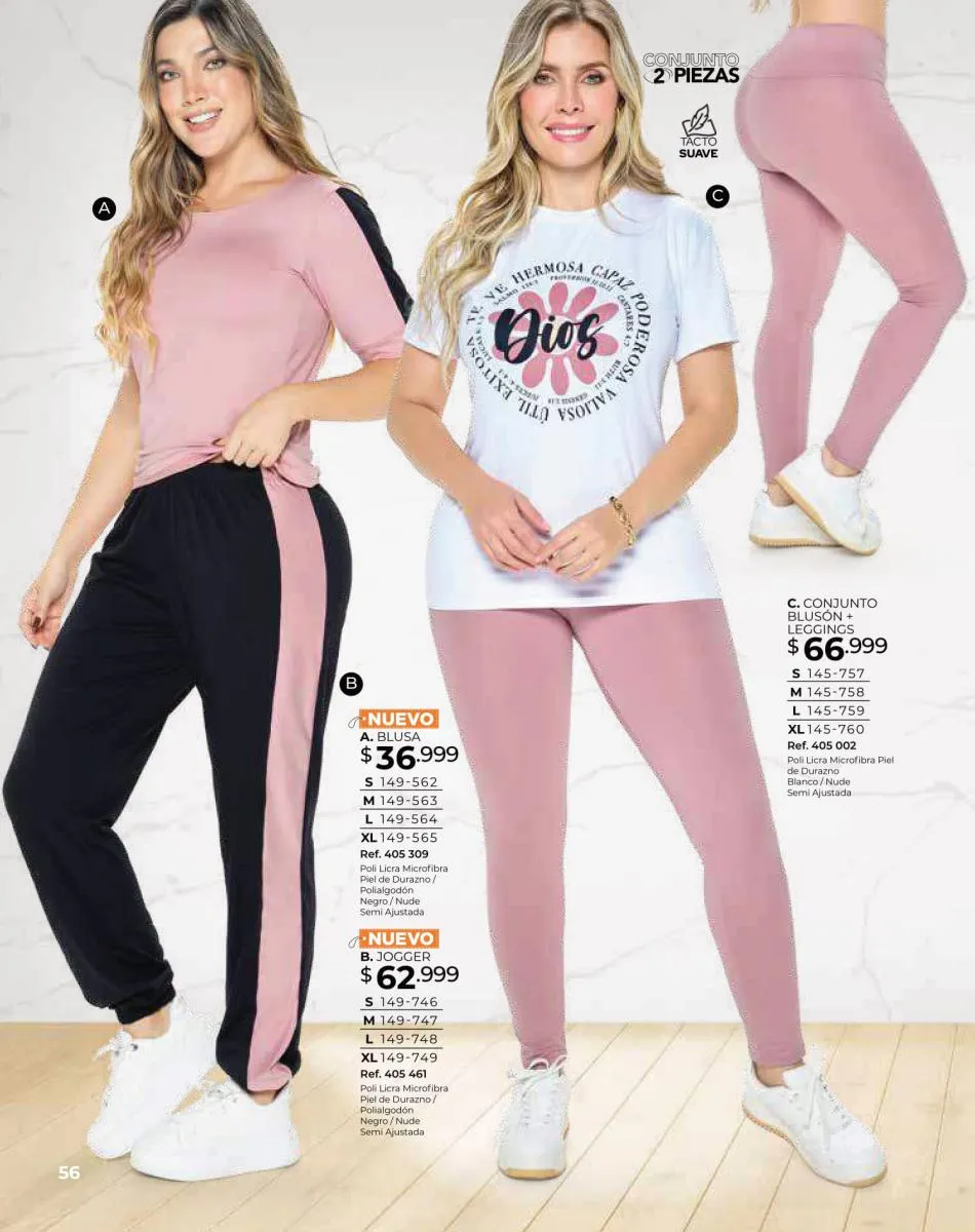 - Siente la comodidad con el blusón negro manga ¾ con detalle de franjas blancas, combinado con pantalón negro con detalle franjas blancas laterales, ambos en talla S/XL. Pag. 67.