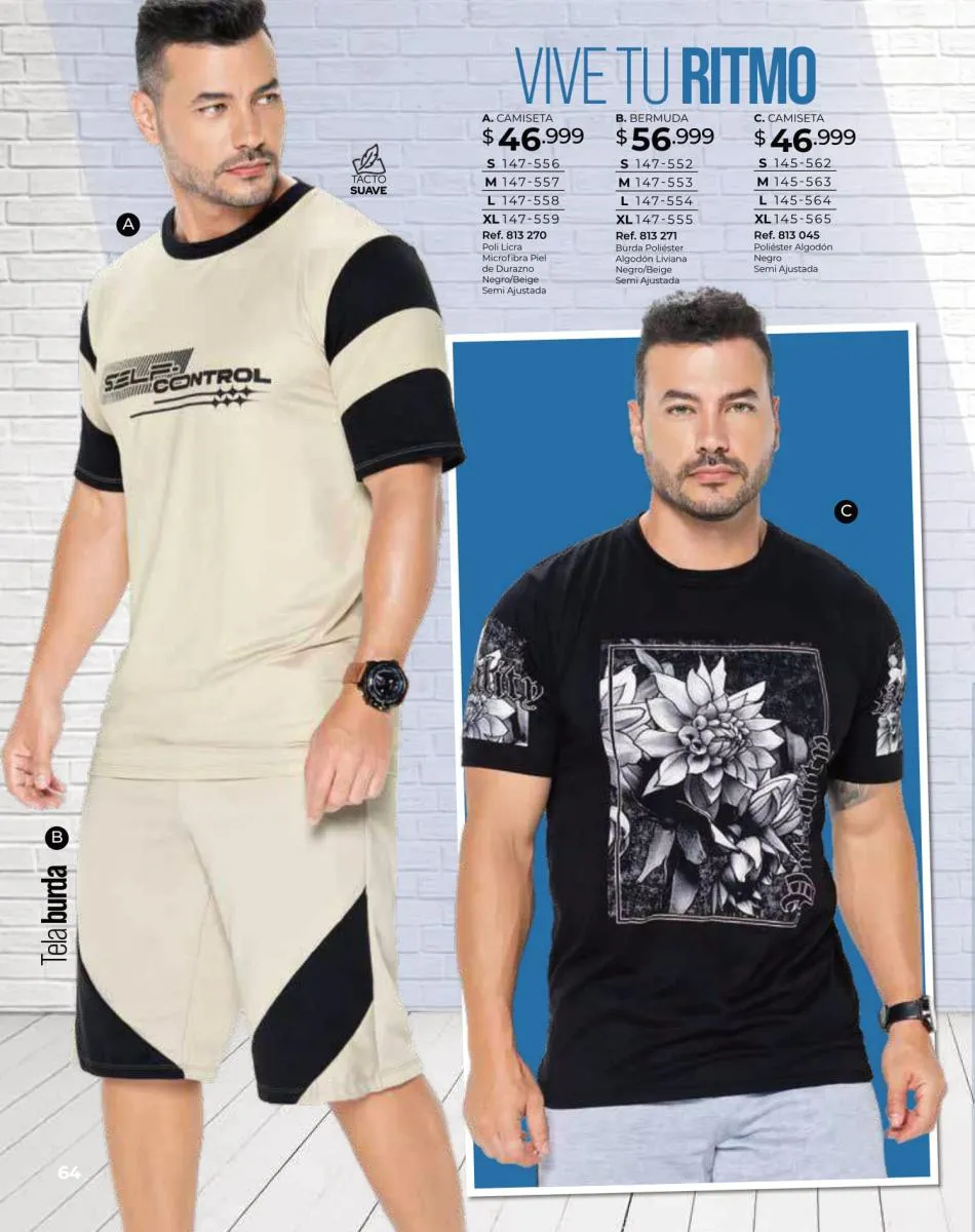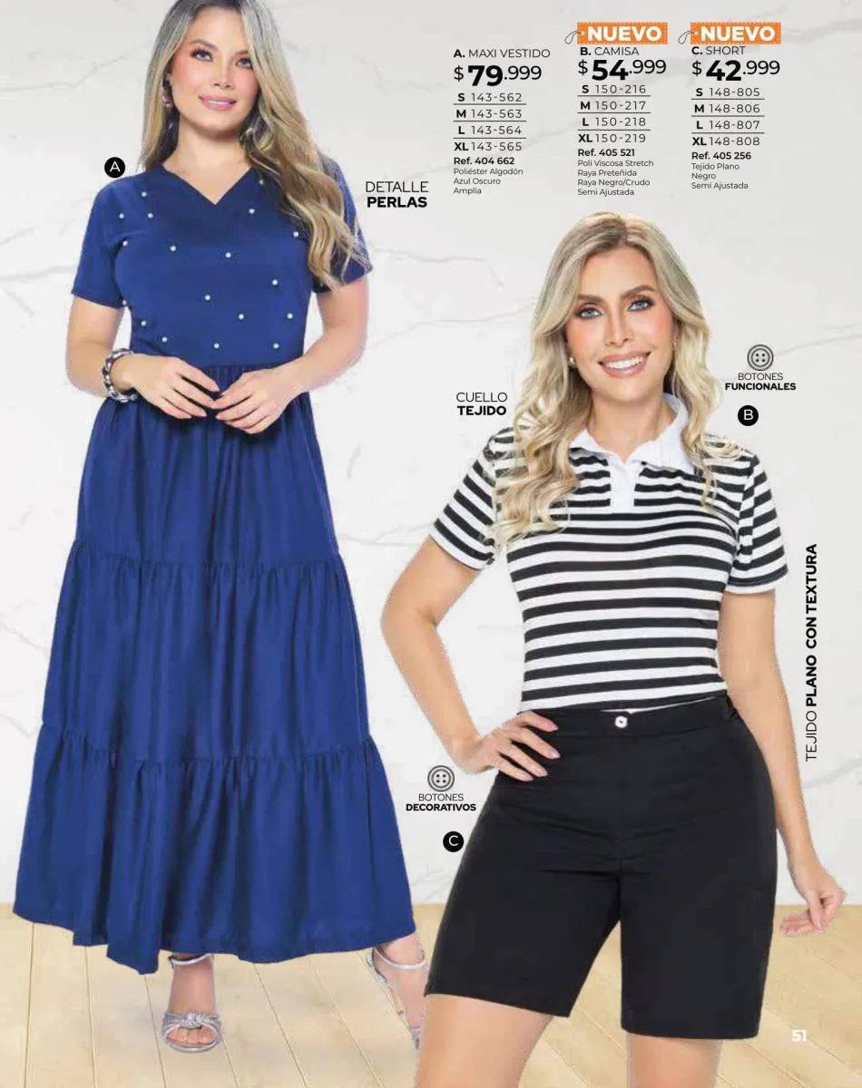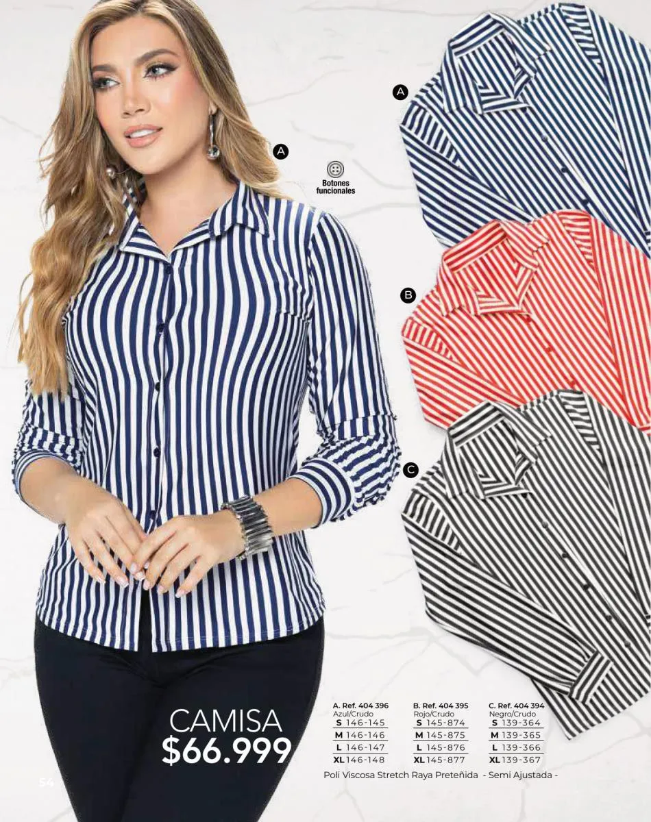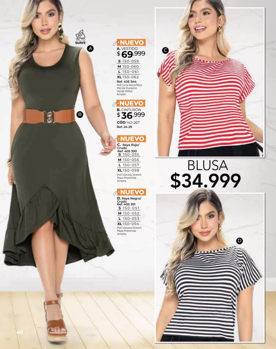 - Blusas y camisetas a rayas, vestidos cortos amplios, blusas tejido plano en varios colores y diferentes tallas encuéntralas desde la página 52 hasta la 55