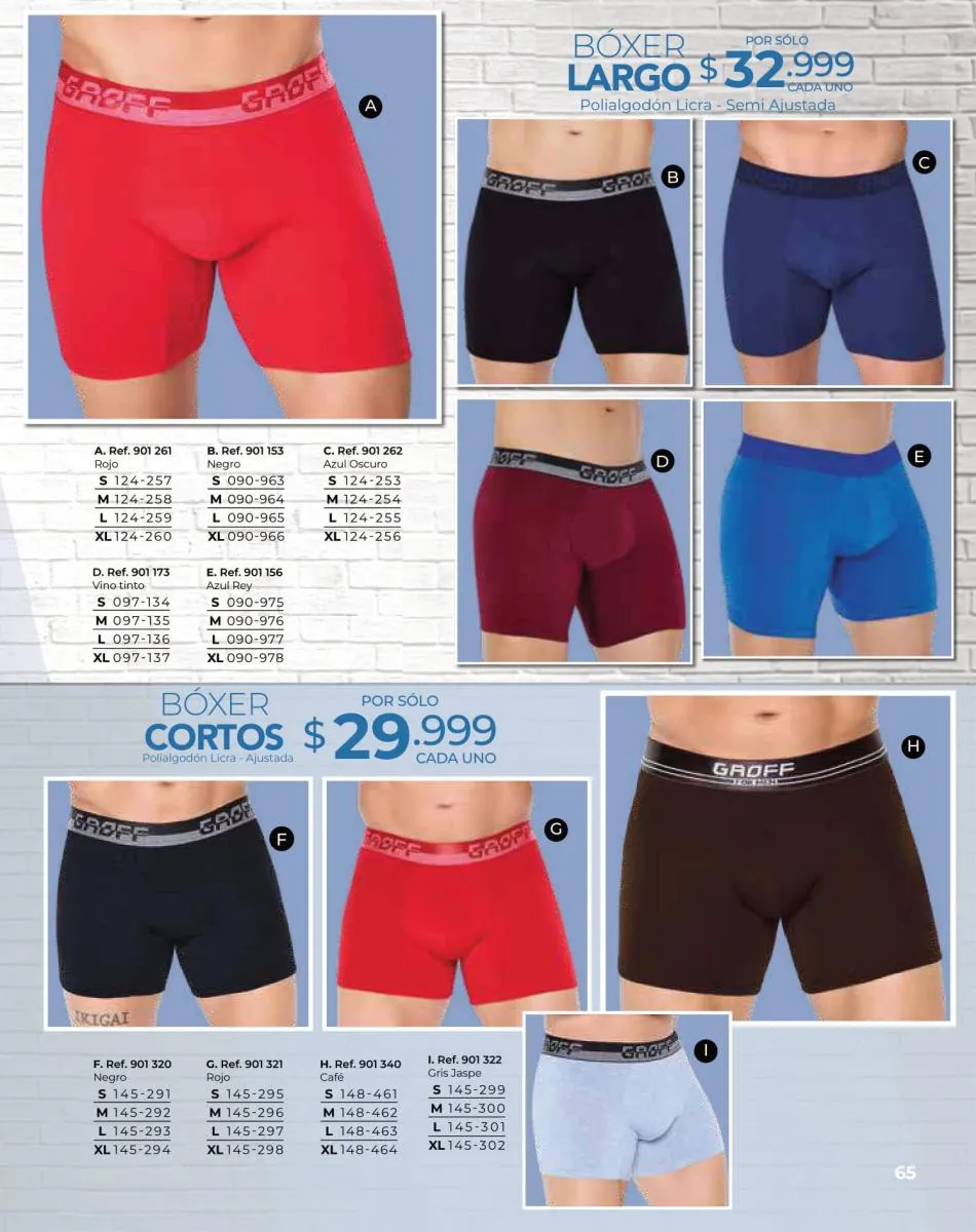 - Bóxer para hombre en diferentes colores talla S/XL. Pag. 114.