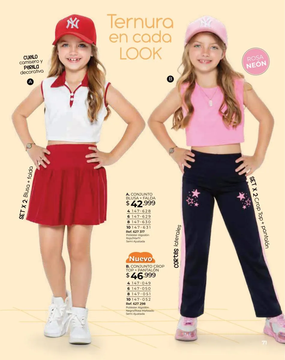 Viste a tus niñas con las hermosas combinaciones que te ofrece el vestido rosado sin mangas con detalles de botones en parte delantera ruedo falda redondeado con corte láser y el enterizo corto rosado con puntos blancos y ajuste en cintura de elástica y cordón con bordes en boleros en ruedo de short. Ambos en talla 4/10. Pag. 91